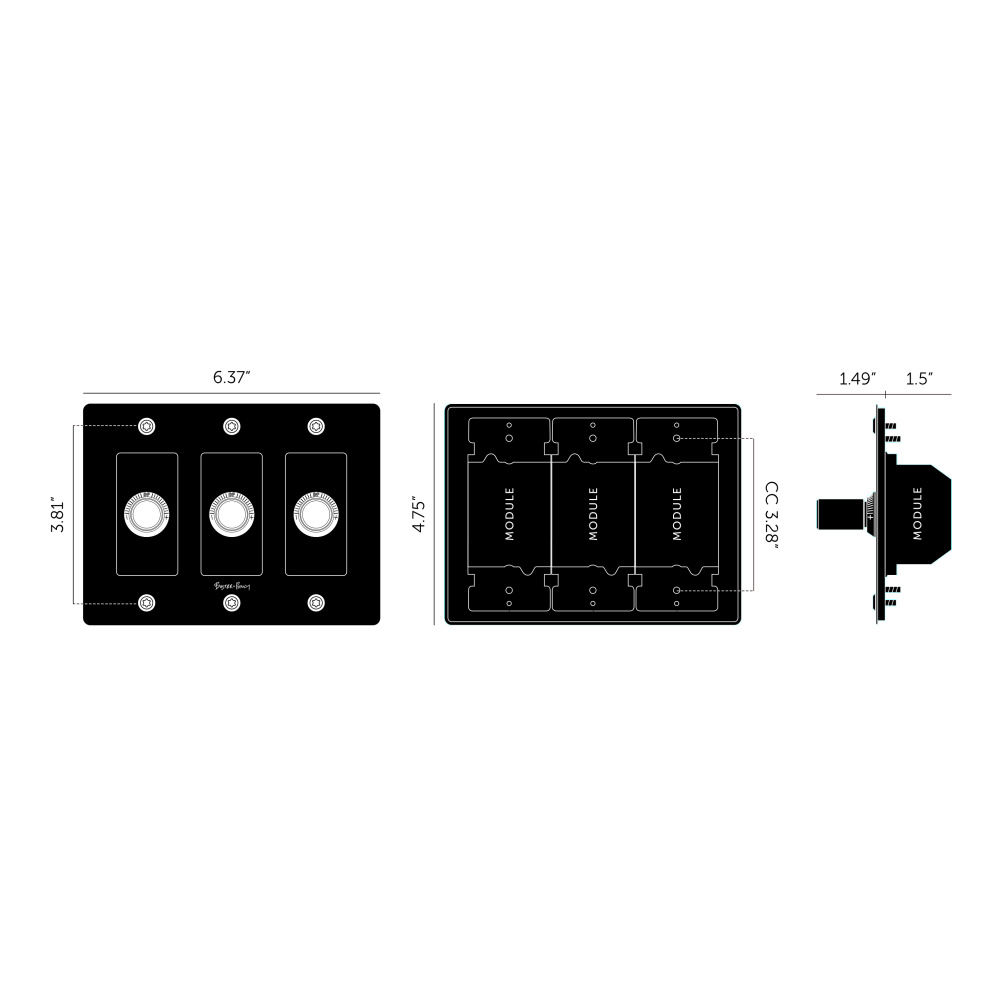 A dimmer switch finished in black. The dimmer knob features our signature, linear knurl pattern and is made from solid black metal. FYI: This piece has a 4 mm shadow gap when installed.