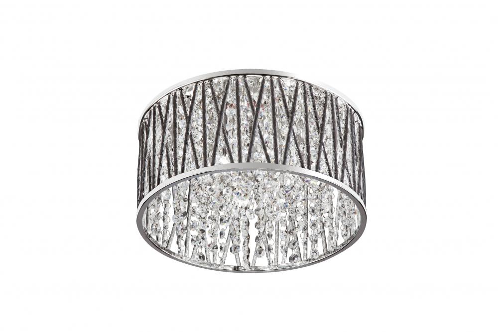 The Loretta 12" Flushmount is a great addition to any room. This unique flushmount fixture is the choice of discriminating yet design conscious homeowners who want to enrich their home's interior. This 3-light Contemporary flush mount features an intricate openwork Polished Chrome cross-over shade with glistening Crystal strands for dimensional shine. The Loretta 12" Flushmount ceiling fixture is perfect for entryways, dining rooms, and bedrooms. There are multiple items in the Loretta Collection to pair this fixture with and bulbs are included with all items in this collection.