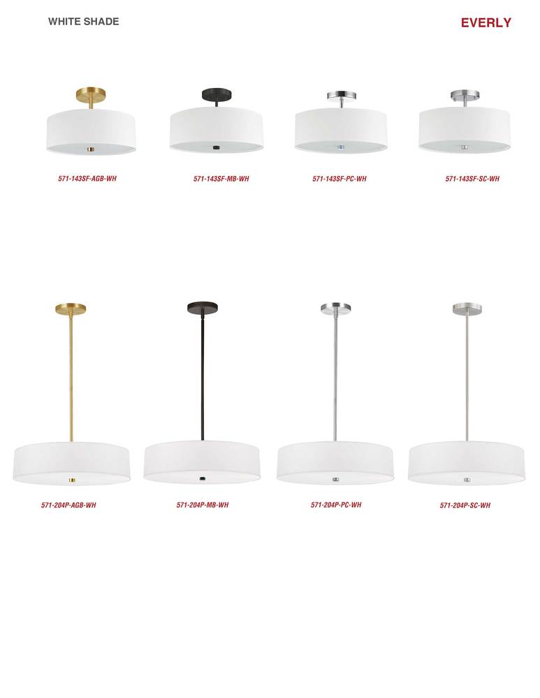 Mid-century, modern or contemporary, the Everly family of lighting will add a fashionable presence to your home décor. The pendant design comes in a one or two tier construction. The metal frame drops to a relatively narrow drum shade, with a contrasting inner shade. From the metal frame to inner and outer shades, color options range from monochromatic to dramatic contrast. With its elegant proportions, the Everly family of lighting brings an element of luxury to foyers, living rooms or kitchens.