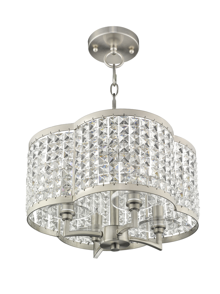 Crystal Strands Strung In A Decrotive Shade Design Define This Classically Glamorous Mini Chandelier/Semi Flush Mount In Which The Bulbs Are Completely Shaded, Allowing The Light To Shine Through The K9 Crystal For A Warm, Intimate Lighting Feel.