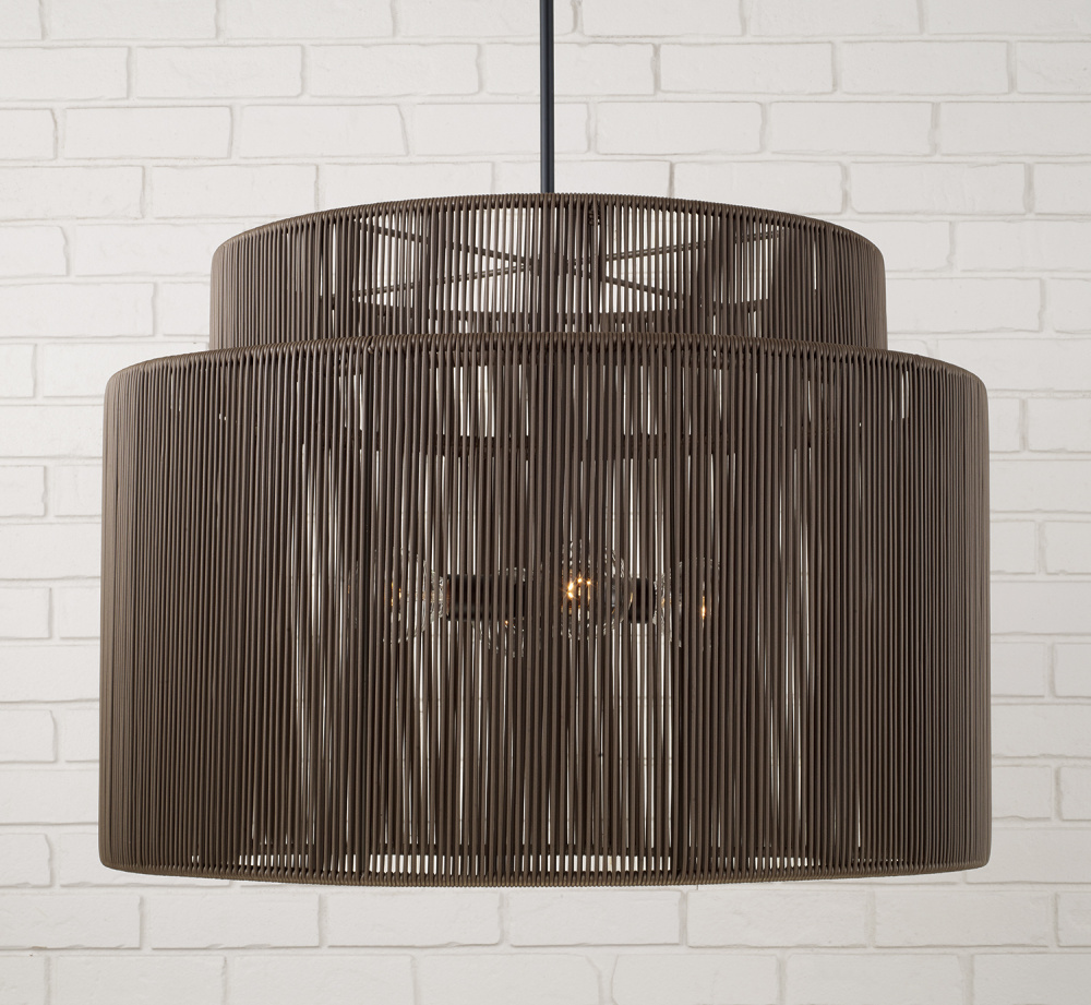 Purposefully crafted for interior and exterior spaces, the Jasper Indoor/Outdoor Large Pendant seamlessly blends durable design with high style. In a tiered drim silhouette, the weather-resistant hand-wrapped resin delivers a moody aesthetic in dark Umber brown, while the Matte Black finish gives a nod to modern style. Rated for Damp Locations and backed by our one-year warranty.