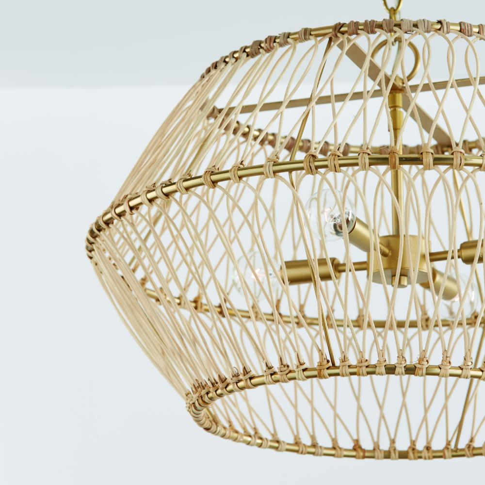 24.25"W x 15.25"H 4-Light Pendant in Matte Brass with Natural Rattan