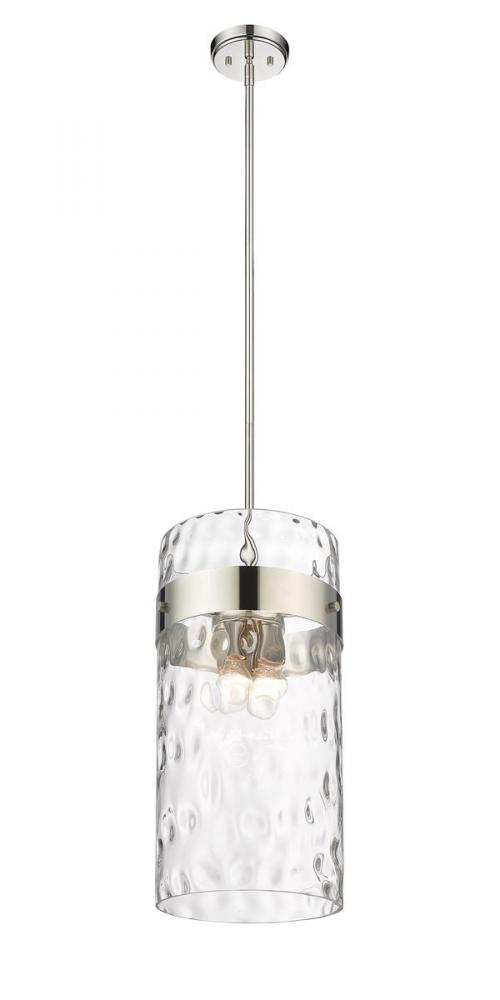 Suspend an alluring four-light pendant fixture from your kitchen ceiling for an aesthetic display. Featuring a cylinder glass shade with a lovely ripple texture, this piece is crafted from steel with a polished nickel finish.