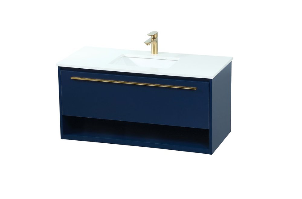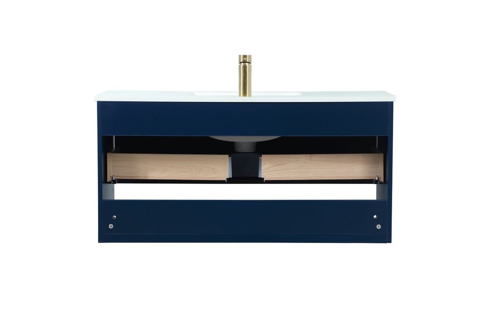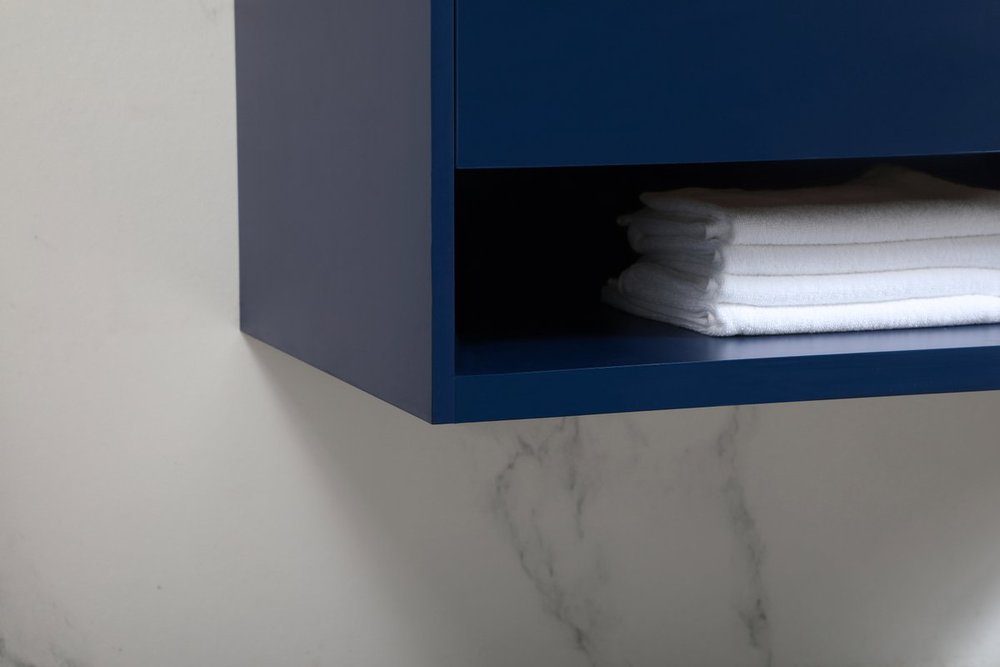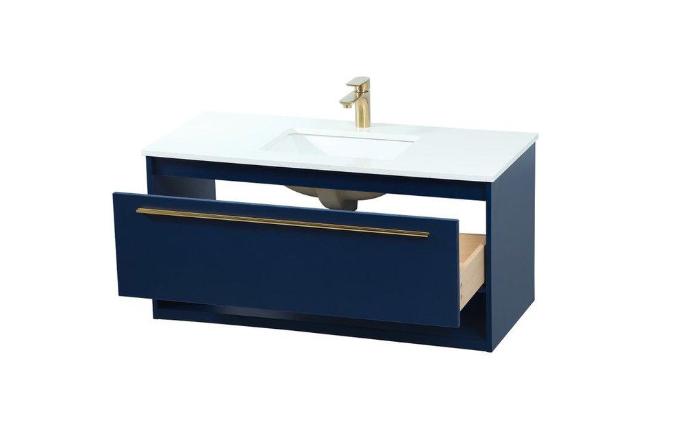 Save space and make your bathroom appear bigger with this floating vanity. Its minimal design will have you in awe, while its clean lines will leave your room feeling fresh and uncluttered. The Single u-drawer pulls out for storage while the open space below allows you to place extra towels or various other essentials. The ivory white engineered marble counter top with porcelain sink adds refined luxe while the aluminum barpull style handle adorn the vanity face.