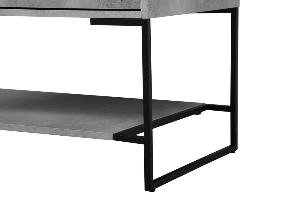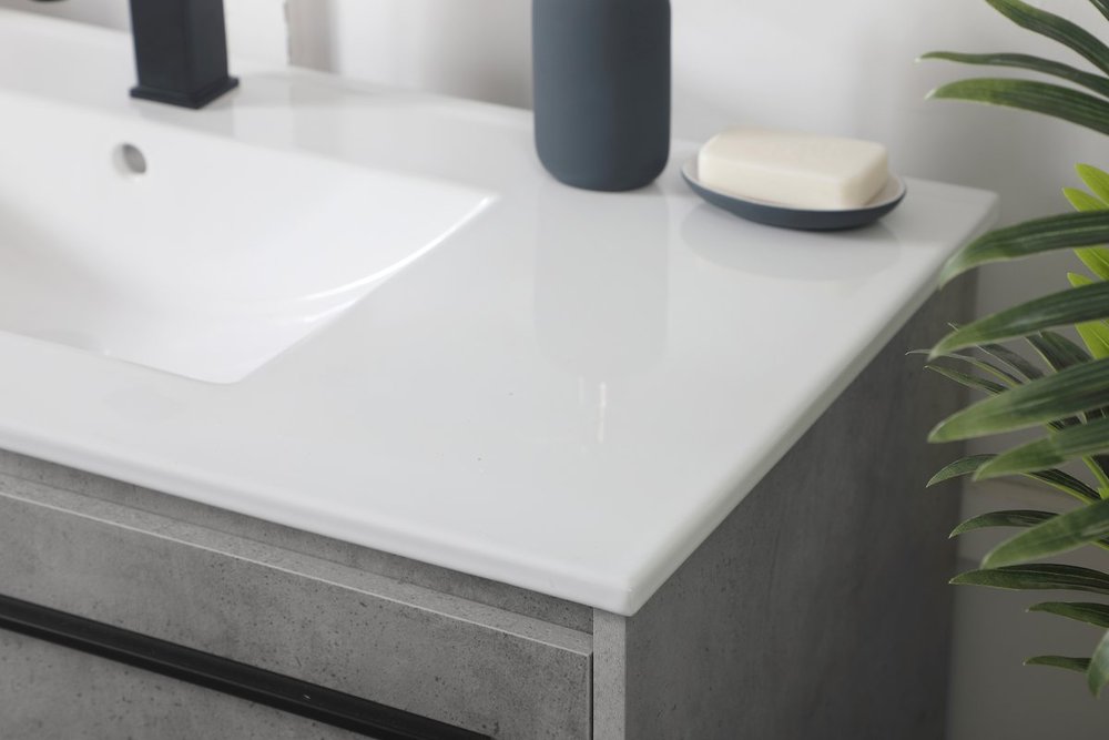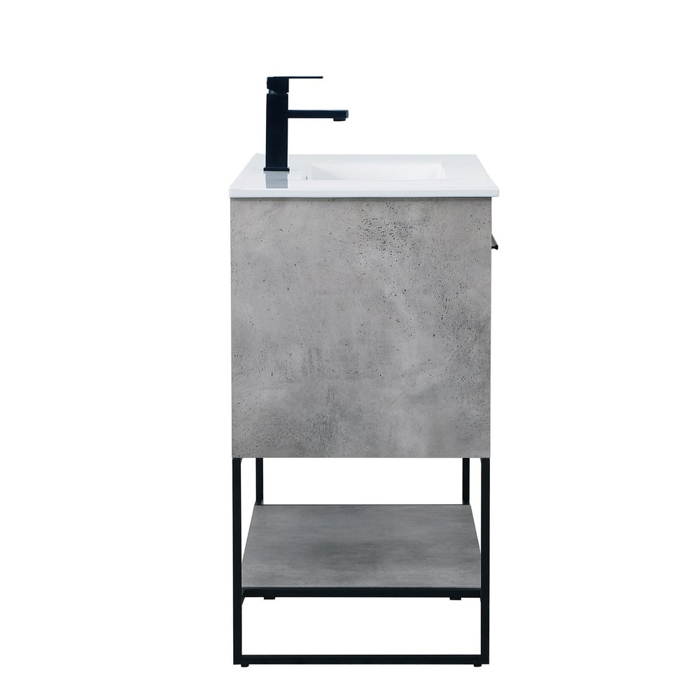 Live in modern comfort with this 40" concrete grey finish vanity. Dressed in a concrete grey and sleek black metal hardware, its contemporary style will have your bathroom or powder room elevated in industrial sophistication. The open shelf at the base and two doors reveal ample storage space for your bathroom essentials and miscellany. Clean lines create its own visual interest, adding trendy looks to your already chic room.
