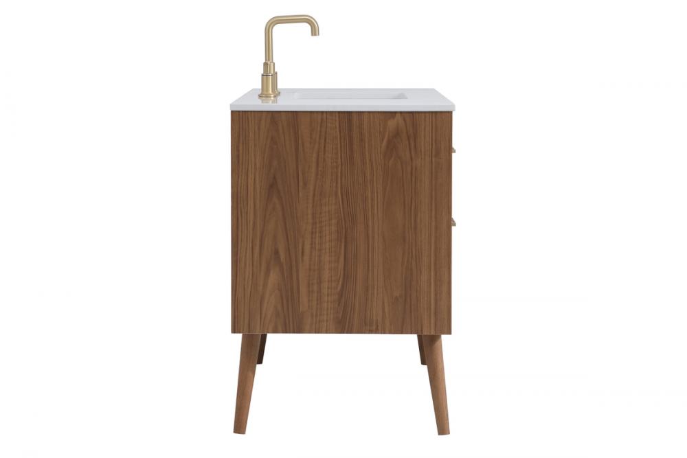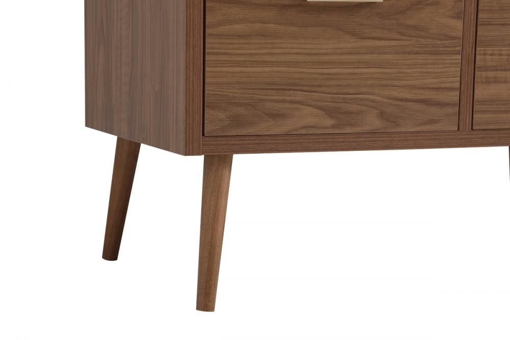 Delve into a world of minimalistic fashion and contemporary styling with this midcentury modern 42" vanity. The clean lines anchors the design, while the oblique tapered cylinder legs add subtle interest. However, the artful juxtaposition creates a blend of bright modernity and classical traditions. A gold handle adorns the top fake drawer hiding the base of the undermount porcelain sink while another one allows you to pull the bottom drawer out, letting you store your bathroom necessities and toiletries. The compact size makes it the perfect vanity for any bathroom or powder room, regardless of size.