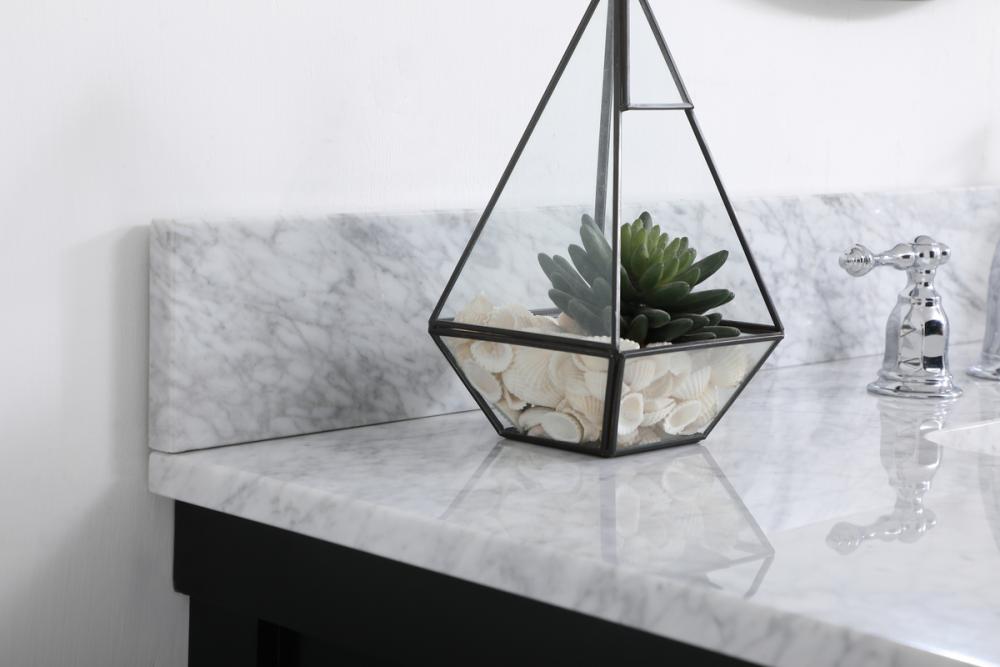 Make the most of your space with this farmhouse style bathroom vanity. Complements well with its beautiful finish, carrara white marble countertop, and the contemporary slender handle bar that sits on the functional drawers with soft closing mechanism, allowing you to store an assortment of bathroom essentials. The lower shelf makes it the perfect space to hold new towels for your guests. This stylish vanity ensures both form and function in your bathroom for you and your guests.
