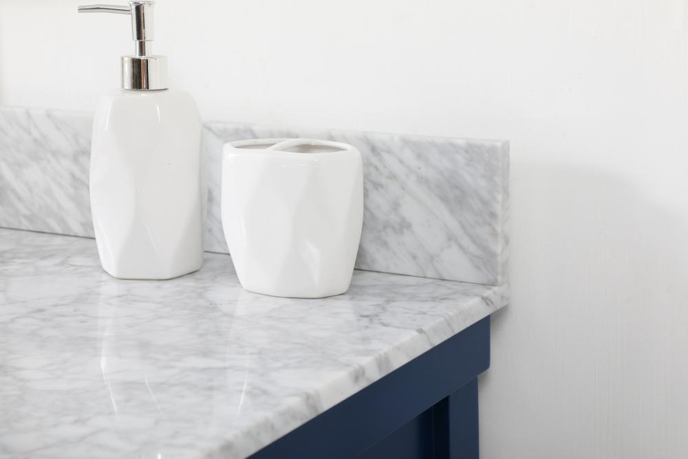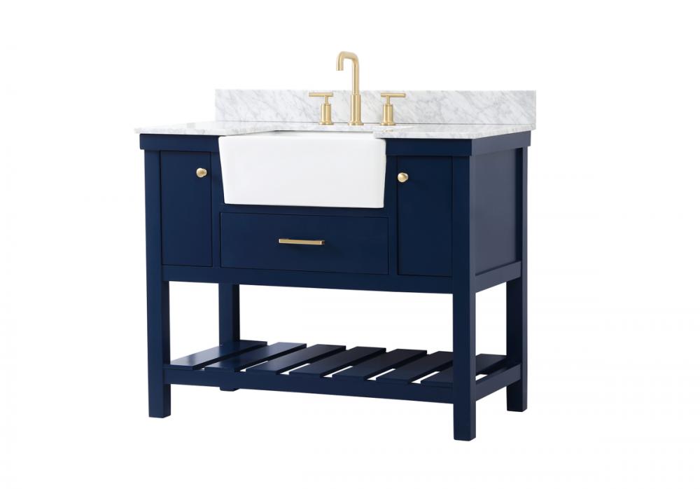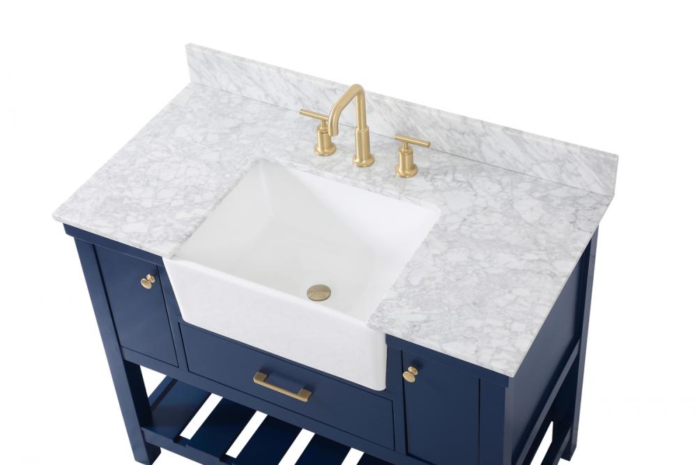 Make the most of your space with this farmhouse style bathroom vanity. Complements well with its beautiful finish, carrara white marble countertop, and the contemporary slender handle bar that sits on the functional drawers with soft closing mechanism, allowing you to store an assortment of bathroom essentials. The lower shelf makes it the perfect space to hold new towels for your guests. This stylish vanity ensures both form and function in your bathroom for you and your guests.