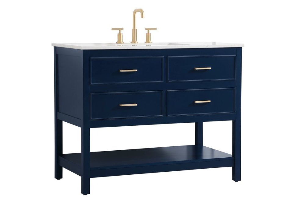 Make the most of your space with this traditional style bathroom vanity. Complements well with many aesthetics with its beautiful finish, calacatta engineered marble countertop, and the contemporary slender handle bar that sits on two upper false drawer and two lower u-shaped drawer, allowing you to store an assortment of bathroom essentials. The lower shelf makes it the perfect space to hold new towels for your guests. This compact vanity ensures both form and function in your bathroom or powder room for you and your guests.