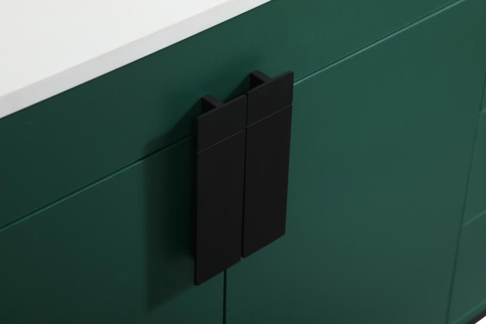 This vanity is a sleek-looking piece of bathroom furniture that is easy to incorporate into your design scheme. The cabinet features a smooth door panel with an oversized steel handle and soft close hinges provide ample room for accessories. Constructed of engineered wood, the powder-coated metal rod legs are an urban industrial look that we love. Minor assembly of the metal legs needed to get this vanity up and running. Comes with a matching backsplash to complete the look and protects your wall.
