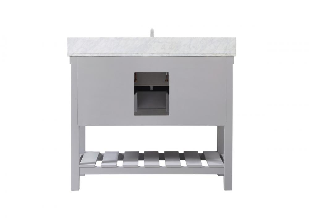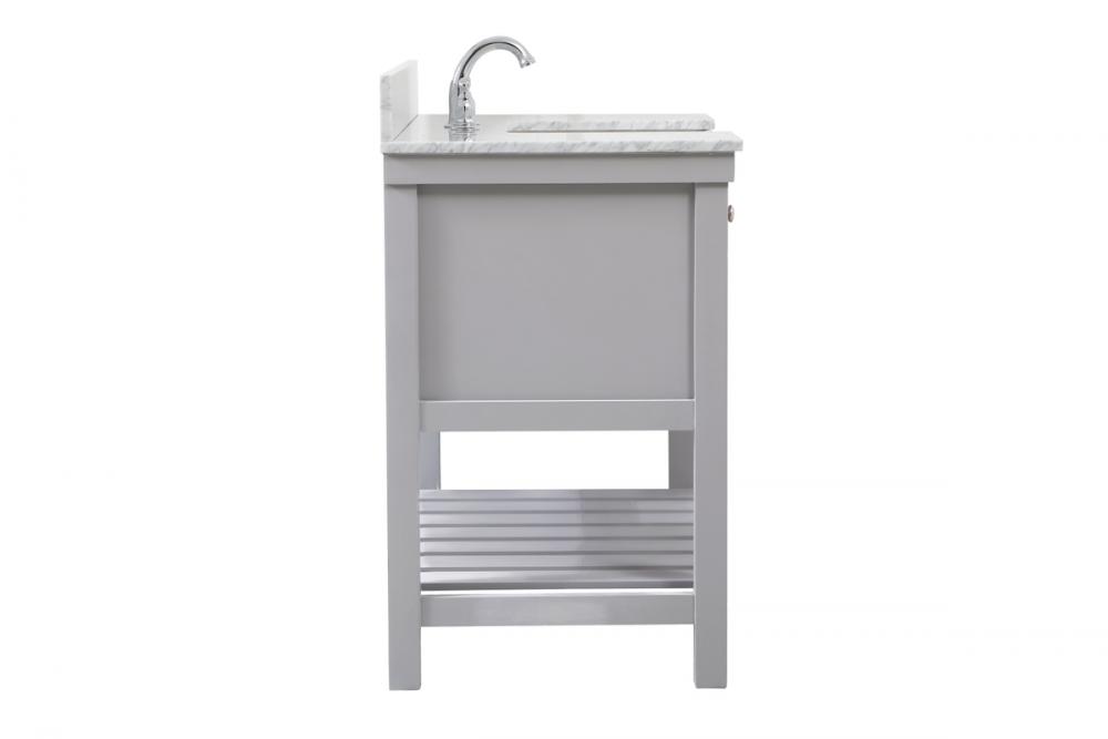 Make the most of your space with this farmhouse style bathroom vanity. Complements well with its beautiful finish, carrara white marble countertop, and the contemporary slender handle bar that sits on the functional drawers with soft closing mechanism, allowing you to store an assortment of bathroom essentials. The lower shelf makes it the perfect space to hold new towels for your guests. This stylish vanity ensures both form and function in your bathroom for you and your guests.