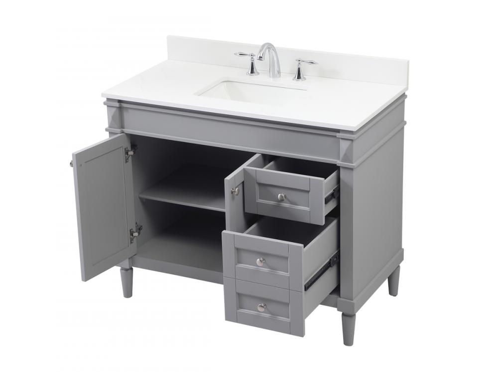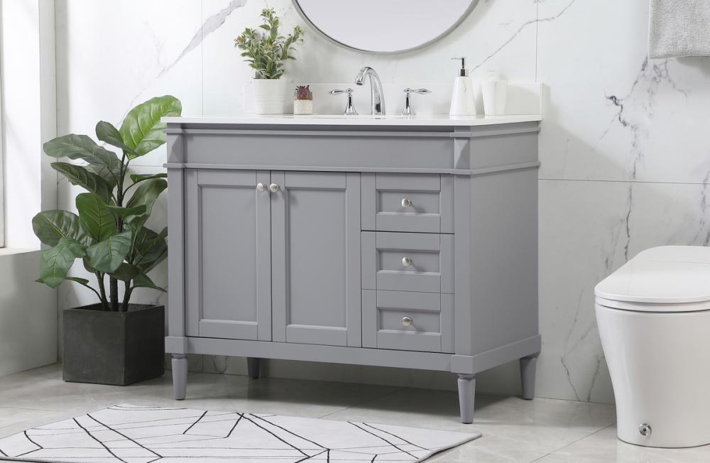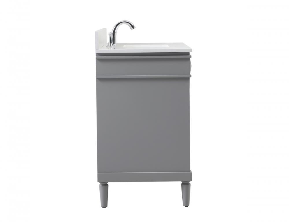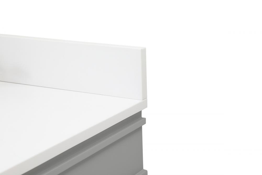 This transitional vanity is a beautiful piece of bathroom furniture will look amazing in your design scheme. The cabinet features a shaker style smooth door panel with simple round knobs and soft close hinges provide ample room for accessories. Packed with multiple side drawers with soft close glides for added comfort and full access to bath supplies. Convenient deep drawer stores all of your tall bath essentials. Constructed of engineered wood and solid wood legs with hand painted finish. The durable engineered marble countertop is a versatile material in an ivory white finish. Minor assembly of the legs needed to get this vanity up and running. Comes with a matching backsplash to complete the look and protects your wall.