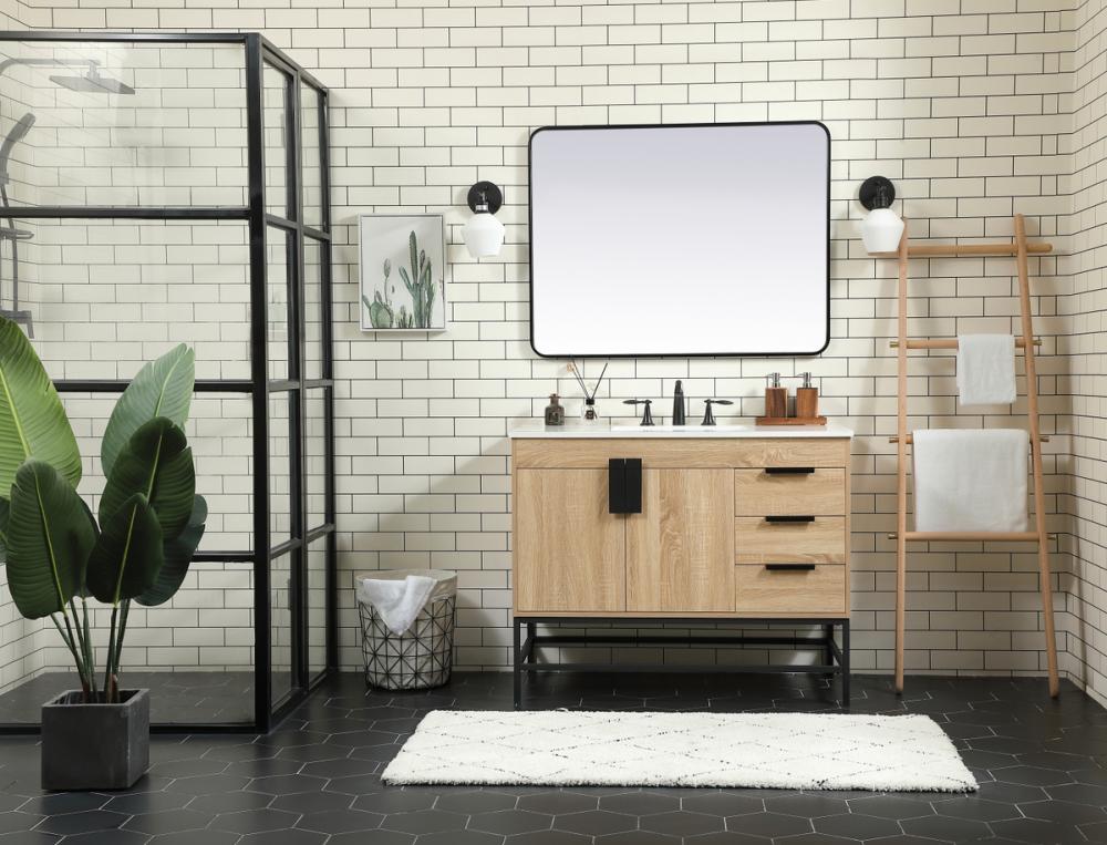 This vanity is a sleek-looking piece of bathroom furniture that is easy to incorporate into your design scheme. The cabinet features a smooth door panel with an oversized steel handle and soft close hinges provide ample room for accessories. Constructed of engineered wood, the powder-coated metal rod legs are an urban industrial look that we love. Minor assembly of the metal legs needed to get this vanity up and running.