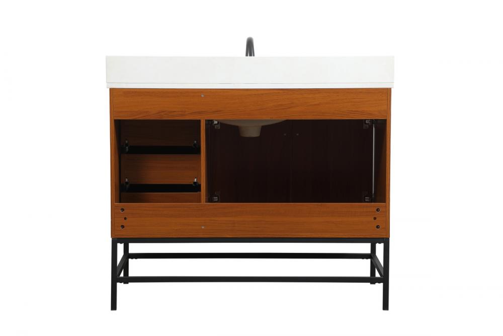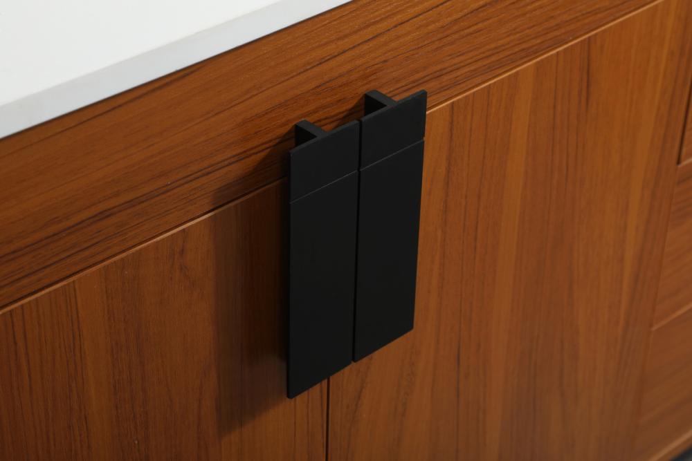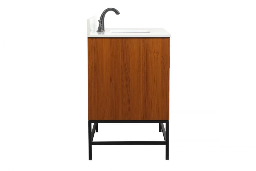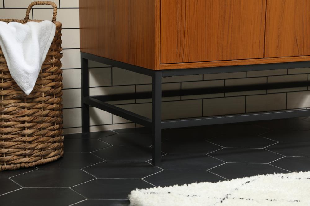 This vanity is a sleek-looking piece of bathroom furniture that is easy to incorporate into your design scheme. The cabinet features a smooth door panel with an oversized steel handle and soft close hinges provide ample room for accessories. Constructed of engineered wood, the powder-coated metal rod legs are an urban industrial look that we love. Minor assembly of the metal legs needed to get this vanity up and running. Comes with a matching backsplash to complete the look and protects your wall.