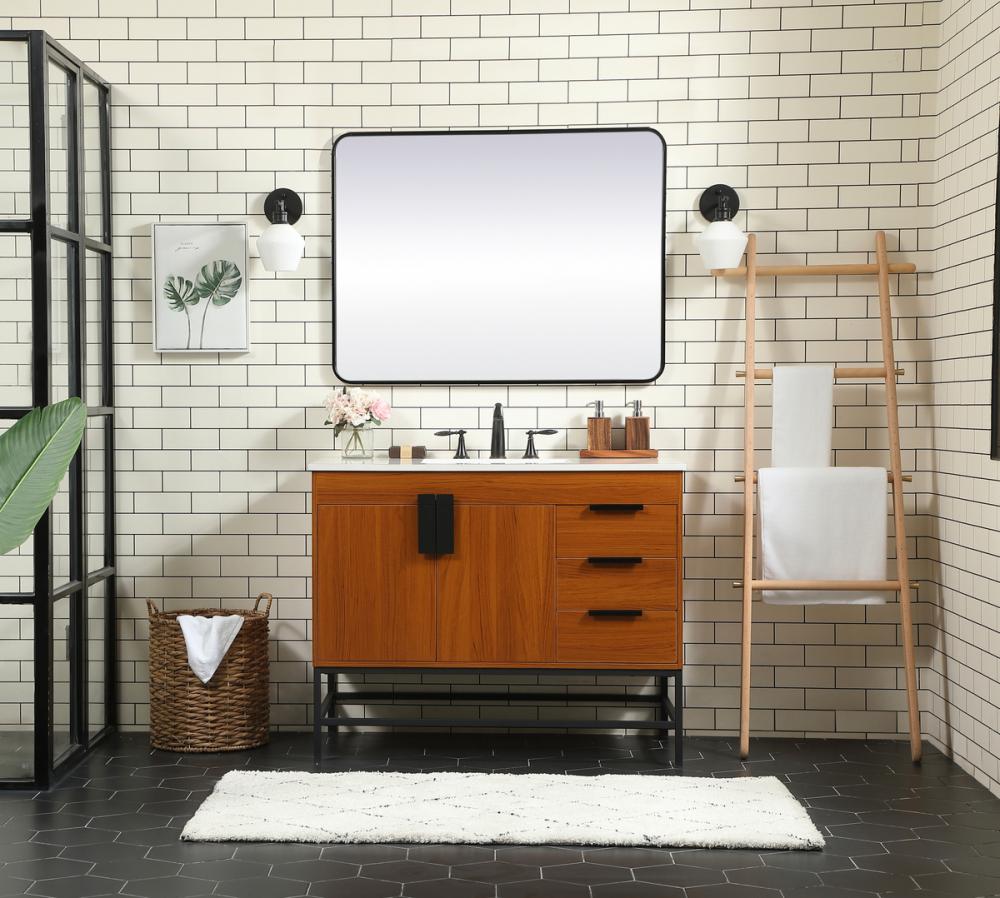 This vanity is a sleek-looking piece of bathroom furniture that is easy to incorporate into your design scheme. The cabinet features a smooth door panel with an oversized steel handle and soft close hinges provide ample room for accessories. Constructed of engineered wood, the powder-coated metal rod legs are an urban industrial look that we love. Minor assembly of the metal legs needed to get this vanity up and running.