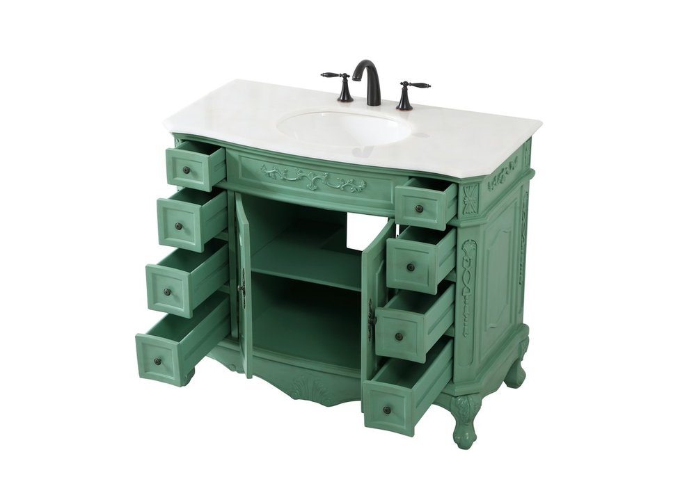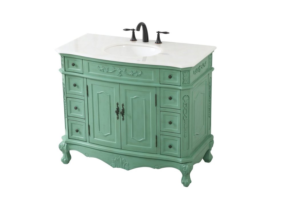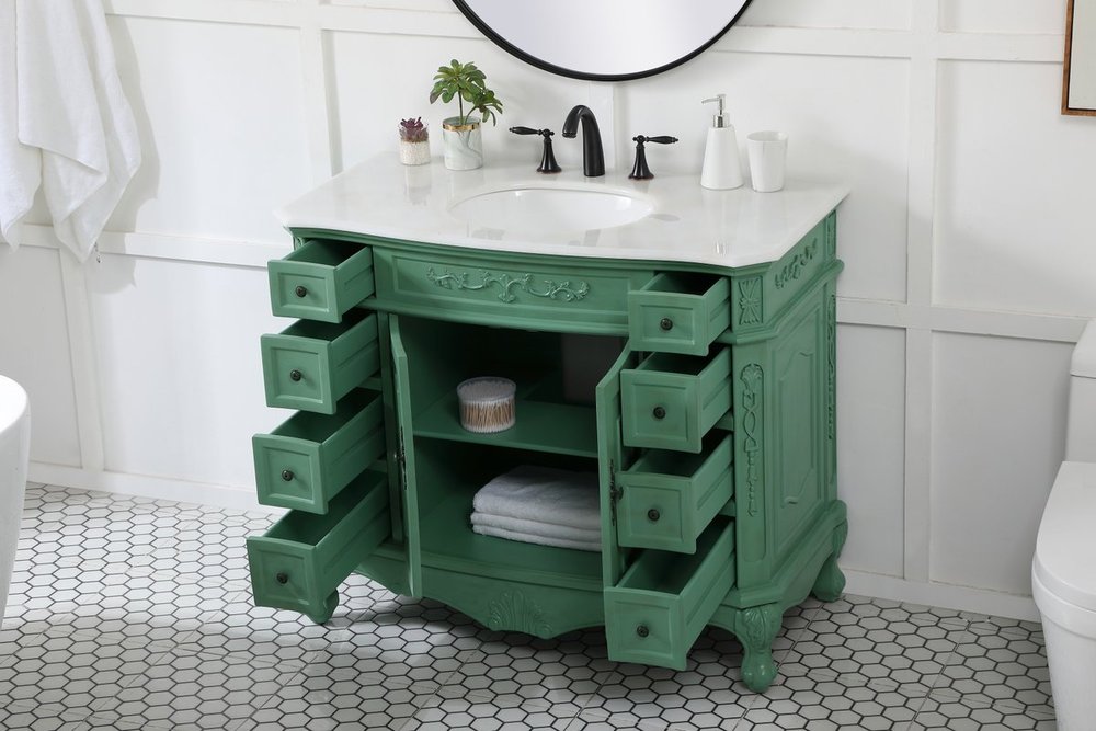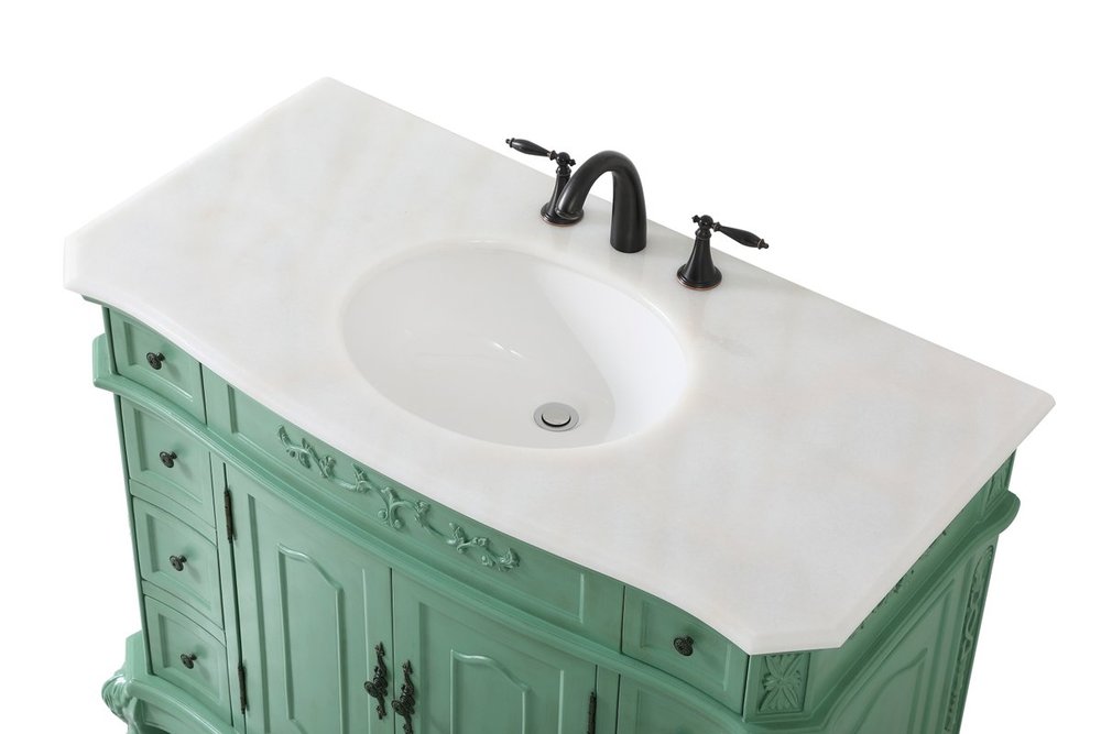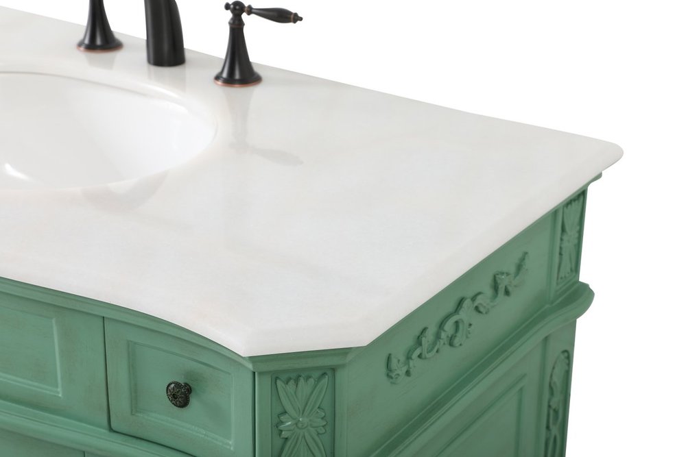 Comes with an off-white marble top with slight brown veining and bevel edge design, please note that due to the natural characteristics of the stone, the color and/or pattern of each countertop may vary from the pictures.