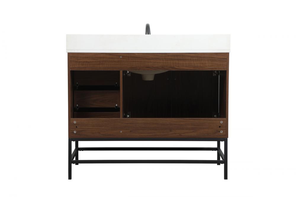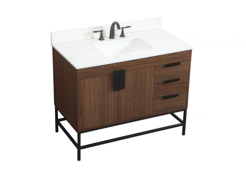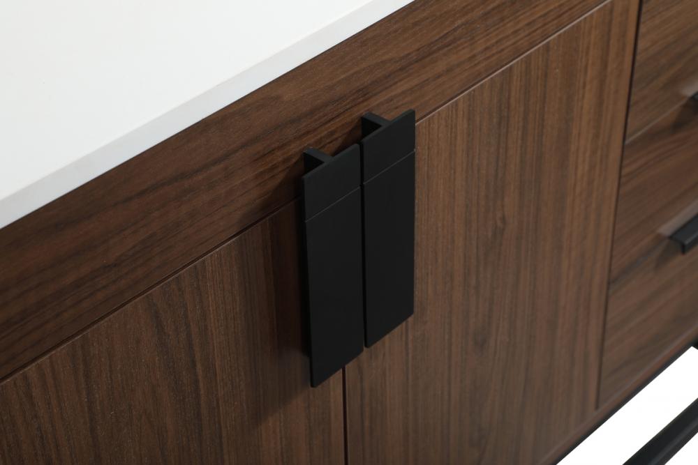 This vanity is a sleek-looking piece of bathroom furniture that is easy to incorporate into your design scheme. The cabinet features a smooth door panel with an oversized steel handle and soft close hinges provide ample room for accessories. Constructed of engineered wood, the powder-coated metal rod legs are an urban industrial look that we love. Minor assembly of the metal legs needed to get this vanity up and running. Comes with a matching backsplash to complete the look and protects your wall.