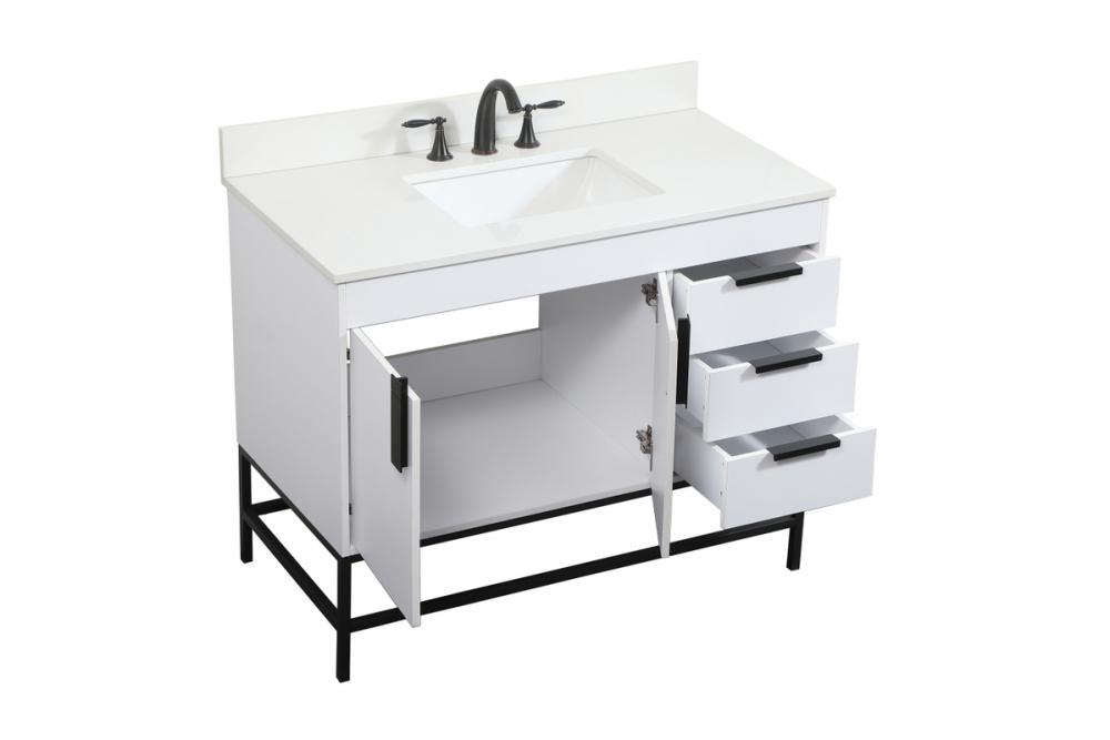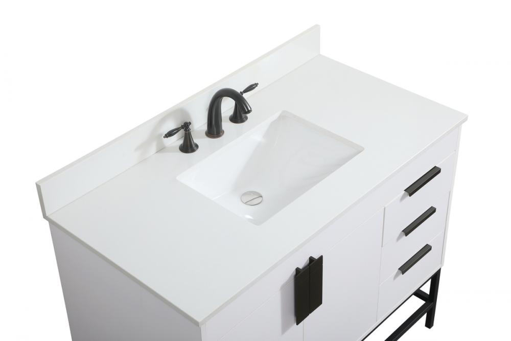Crafted with durable engineered marble top in ivory white finish