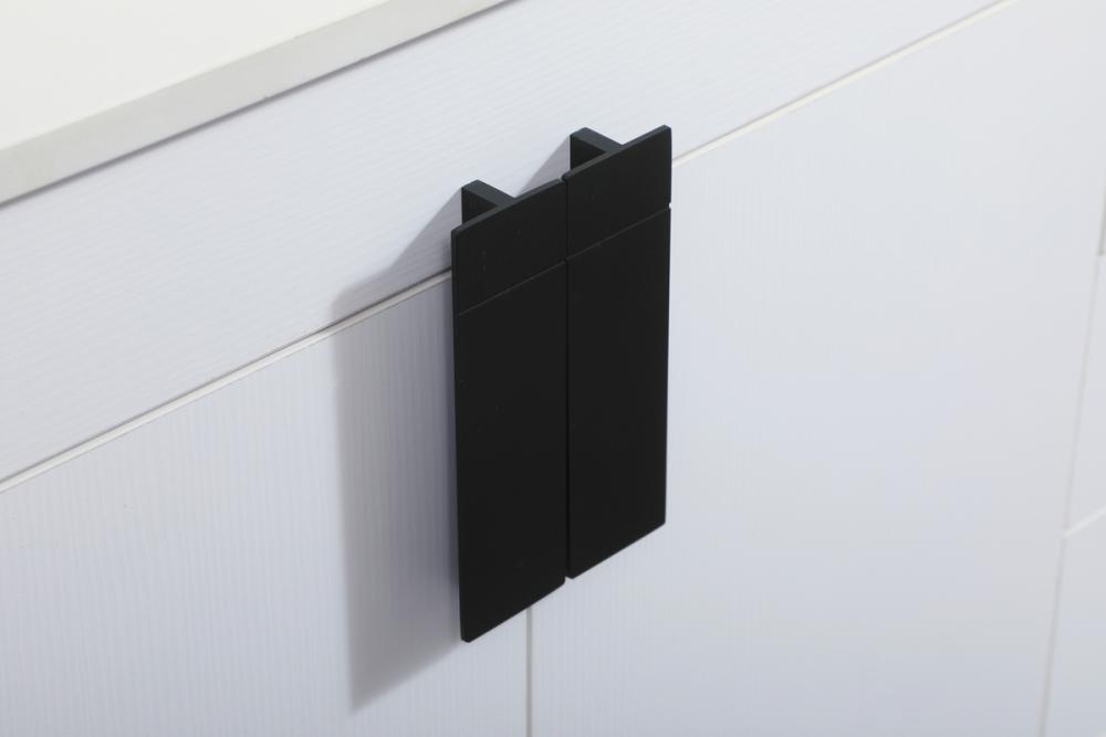 Oversized modern handles accentuates the smooth mdf wood base