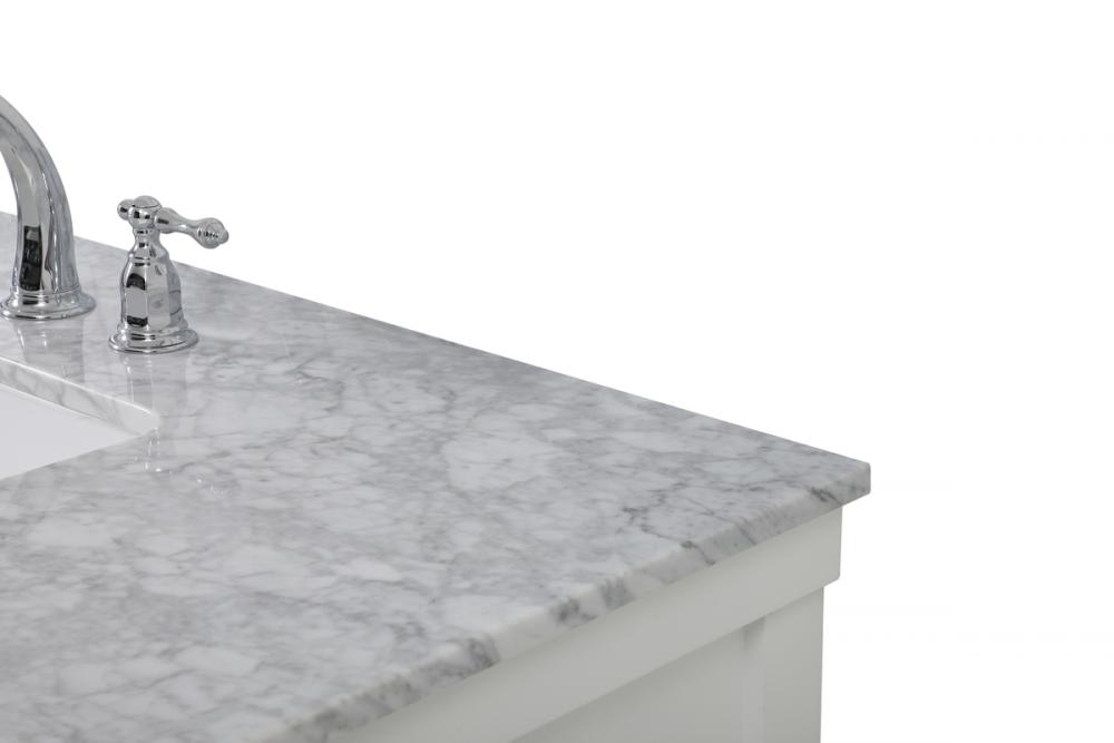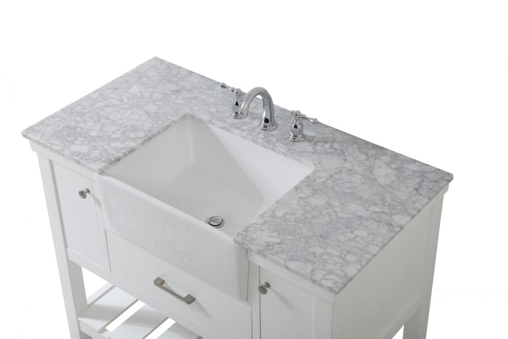 Comes with an apron porcelain sink and durable marble stone top in carrara white finish