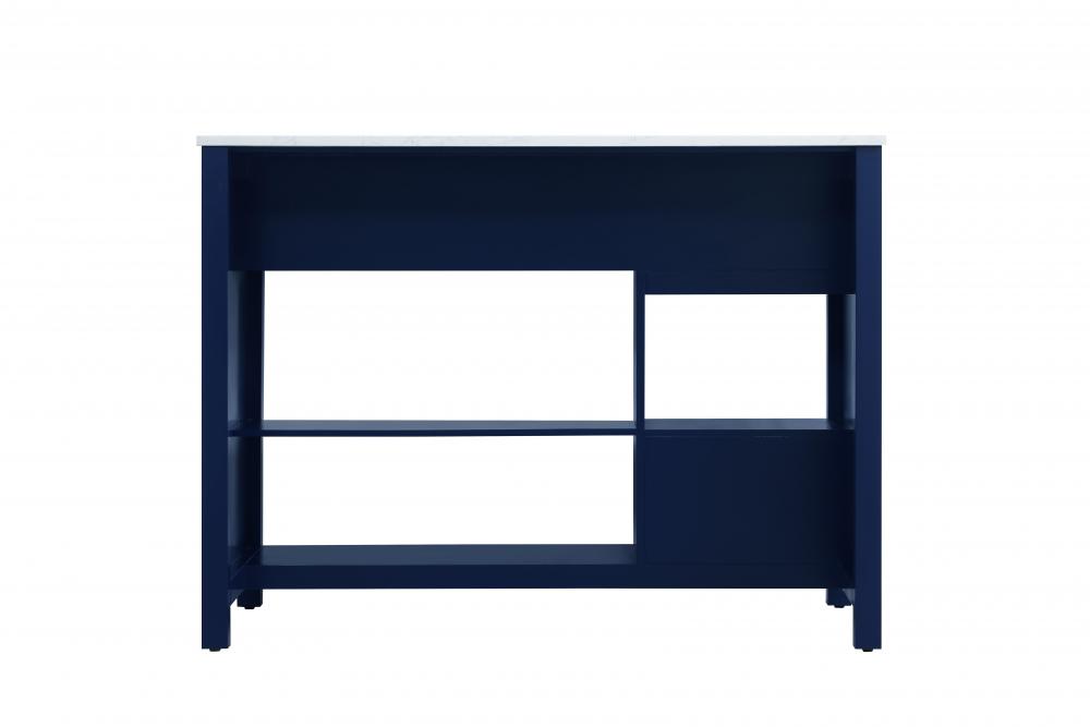 The engineered marble top, measuring 48" L x 26" W, provides plenty of room for food prep, serving, or casual dining.