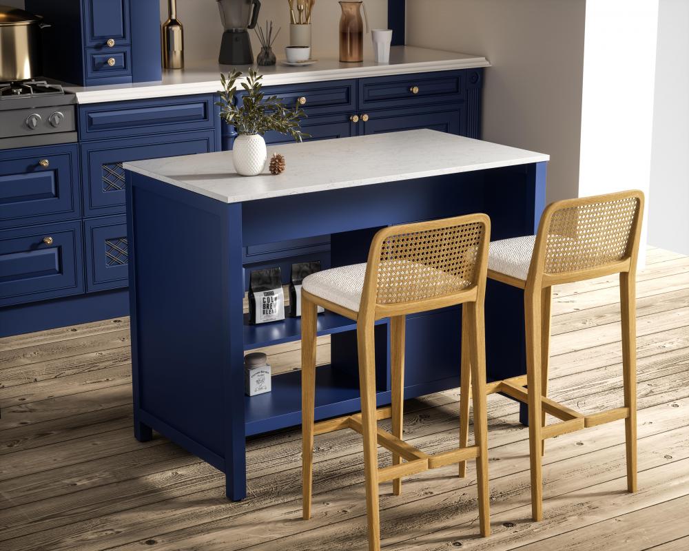 With a 12" deep overhang on one side, this kitchen island comfortably seats two barstools, making it ideal for breakfast or casual gatherings. The adjustable foot levelers ensure stability on any floor type, and the unit ships fully assembled, so you can enjoy it immediately. Available in three distinct finishes—blue, natural oak, and white—it seamlessly fits into any decor style while elevating your kitchen’s functionality. Whether you’re entertaining or cooking, this kitchen island has everything you need in one beautiful package.