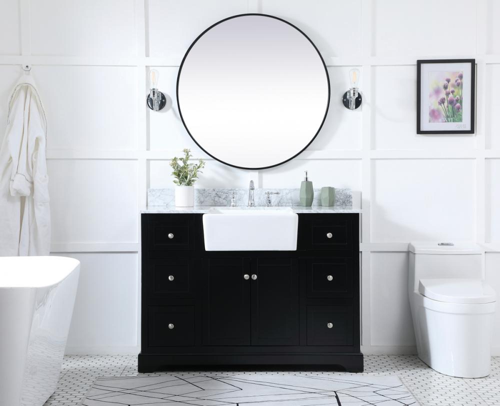 Make the most of your space with this farmhouse style bathroom vanity. Complements well with its beautiful finish, carrara white marble countertop, and the contemporary slender handle bar that sits on the functional drawers with soft closing mechanism, allowing you to store an assortment of bathroom essentials. This stylish vanity ensures both form and function in your bathroom for you and your guests.