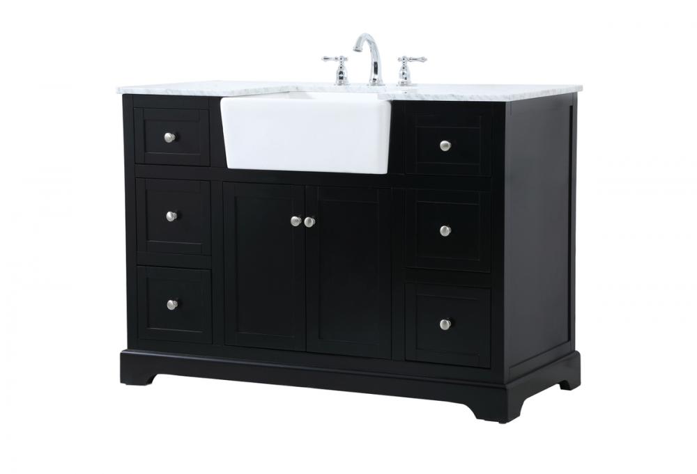 Make the most of your space with this farmhouse style bathroom vanity. Complements well with its beautiful finish, carrara white marble countertop, and the contemporary slender handle bar that sits on the functional drawers with soft closing mechanism, allowing you to store an assortment of bathroom essentials. This stylish vanity ensures both form and function in your bathroom for you and your guests.