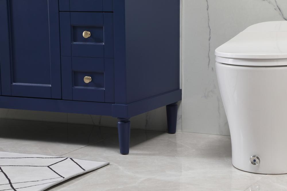 This transitional vanity is a beautiful piece of bathroom furniture will look amazing in your design scheme. The cabinet features a shaker style smooth door panel with simple round knobs and soft close hinges provide ample room for accessories. Packed with multiple side drawers with soft close glides for added comfort and full access to bath supplies. Convenient deep drawer stores all of your tall bath essentials. Constructed of engineered wood and solid wood legs with hand painted finish. The durable engineered marble countertop is a versatile material in an ivory white finish. Minor assembly of the legs needed to get this vanity up and running. Comes with a matching backsplash to complete the look and protects your wall.