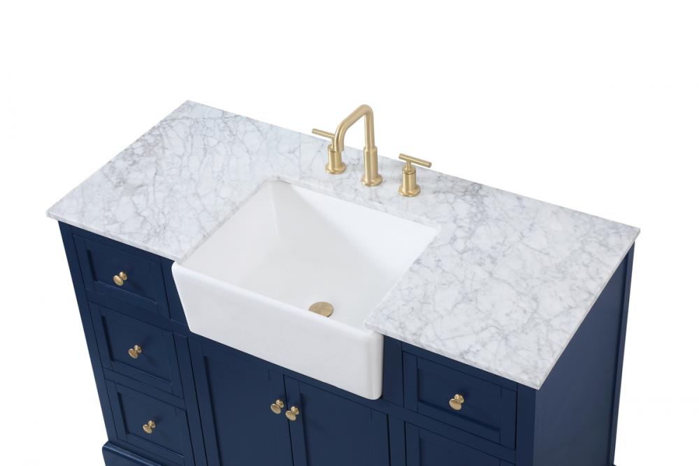 Make the most of your space with this farmhouse style bathroom vanity. Complements well with its beautiful finish, carrara white marble countertop, and the contemporary slender handle bar that sits on the functional drawers with soft closing mechanism, allowing you to store an assortment of bathroom essentials. The lower shelf makes it the perfect space to hold new towels for your guests. This stylish vanity ensures both form and function in your bathroom for you and your guests.