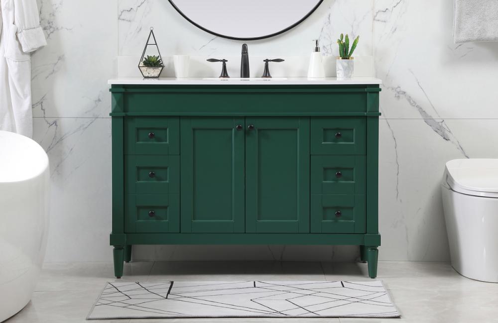 This transitional vanity is a beautiful piece of bathroom furniture will look amazing in your design scheme. The cabinet features a shaker style smooth door panel with simple round knobs and soft close hinges provide ample room for accessories. Packed with multiple side drawers with soft close glides for added comfort and full access to bath supplies. Convenient deep drawer stores all of your tall bath essentials. Constructed of engineered wood and solid wood legs with hand painted finish. The durable engineered marble countertop is a versatile material in an ivory white finish. Minor assembly of the legs needed to get this vanity up and running. Comes with a matching backsplash to complete the look and protects your wall.