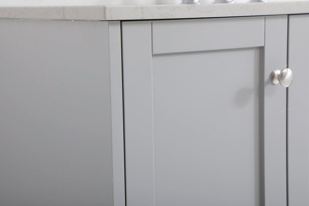 While unassuming, this 48" vanity in a grey finish sure knows how to redefine luxury. The sleek brushed nickel knobs adorn the 4 cabinet doors and 2 bottom drawers which allow you to store your bathroom toiletries and necessities. Standing strong on oblique legs and dressed with a Calacatta engineered marble countertop, this vanity will surely create beauty and casual elegance in your bathroom or powder room.