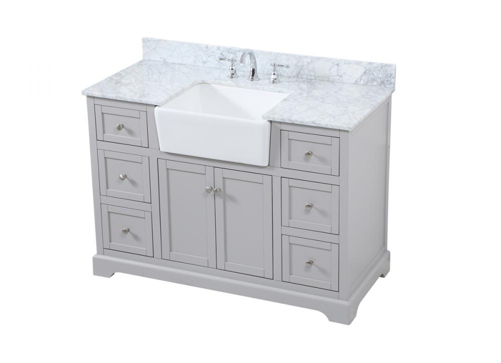 Comes with an apron porcelain sink and durable marble stone top in carrara white finish