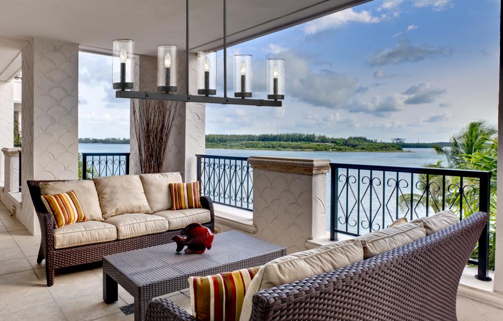 Exterior or interior, fashionable light fixtures add a welcomed dose of aesthetical updates and ambient lighting, both delivered in style by the Marlow five-light outdoor linear fixture. Sophisticated minimalism reflects in a fixture featuring a steel frame with an ashen barnboard finish with matching accents. Cylinder shades fashioned of romantic seedy glass dress up its romantic attitude, offering a filtered view of candelabra-style bulbs.