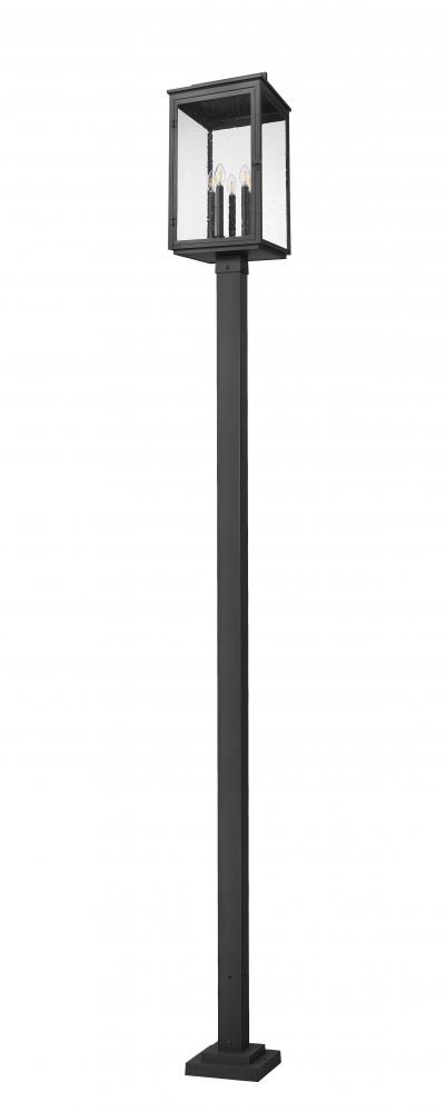 Set the tone with the simple post and charming handled crown featured on this traditional Mission five-light outdoor post mount fixture. Its clean-lined form is crafted in aluminum and received a marine-grade sand black finish for added texture and dimensionality. Clear seedy glass panes enclose the light cluster, adding a perfect hint of dimension and character.
