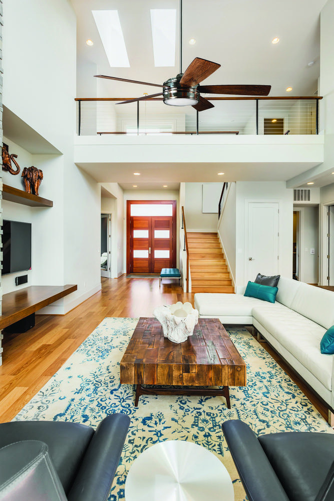 The Braxton 52" indoor five-blade ceiling fan with heavy-duty, 3-speed reversible motor, custom reversible blades, and integrated dimmable LED light with ISC remote and wall controls offers both refinement and performance.