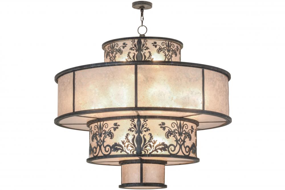 An exquisite four tier pendant features stunning Silver Mica diffusers with the top and third tiers accentuated with a floral and scroll design in an Antique Iron Gate finish. This luxurious pendant illuminates with energy efficient LEDs supplied by the owner. Custom crafted at our manufacturing facility in the USA, this fixture is available in custom sizes, styles and colors, as well as dimmable energy efficient lamping options. The fixture is UL and cUL listed for damp and dry locations.