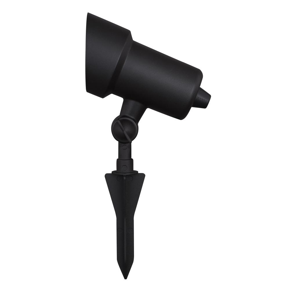 This contemporary low voltage landscape flood light with integrated LED is the perfect outdoor lighting solution. It offers functionality, energy savings, and security for your outdoor spaces. Rotate the single black light head vertically up or down to direct the light precisely where you need it. Bright 550 lumens of output plus three selectable color temperatures - 3000K warm white, 4000K bright white, 5000K daylight - allow you to choose the quality of brightness. Connect this stake spot light with other landscape lighting products to customize and highlight your outdoor spaces. Ground stake and connector cable included. Low voltage transformer required (sold separately).