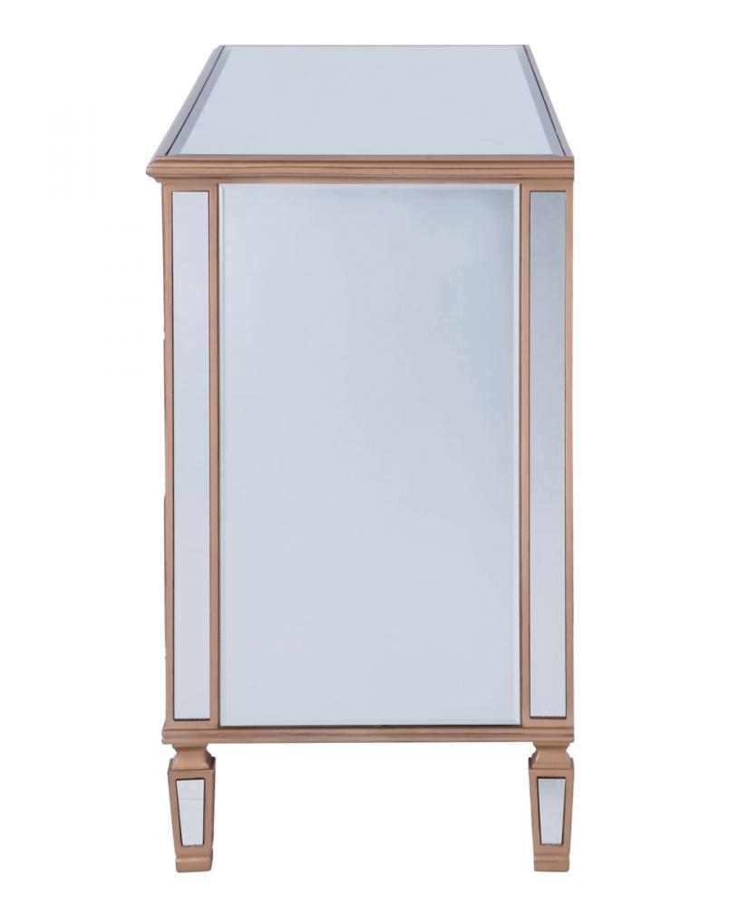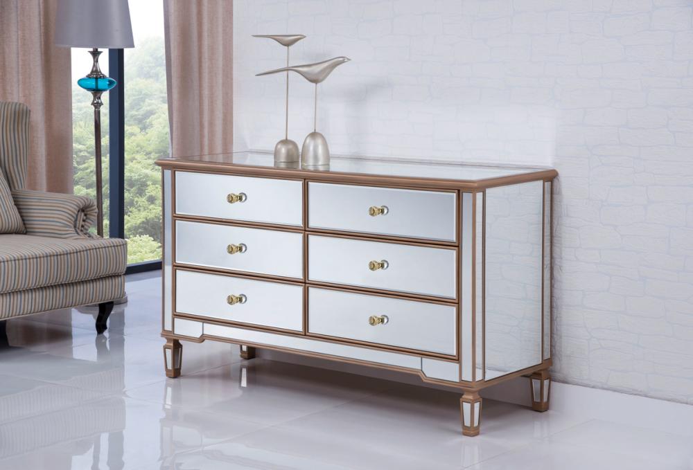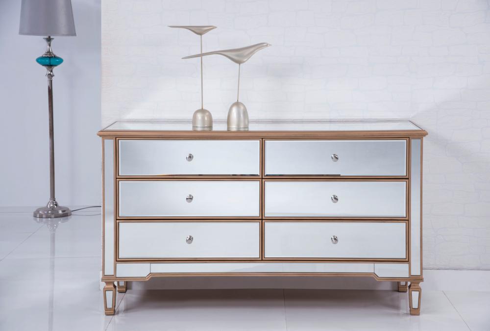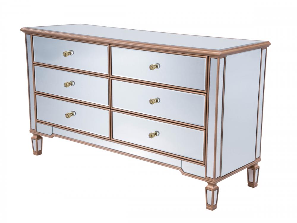 Featuring a hand-rubbed gold finish, incised carved legs and classy lines, this cabinet evokes richness and class, while giving you plenty of drawer space for your clothing or anything you treasure.