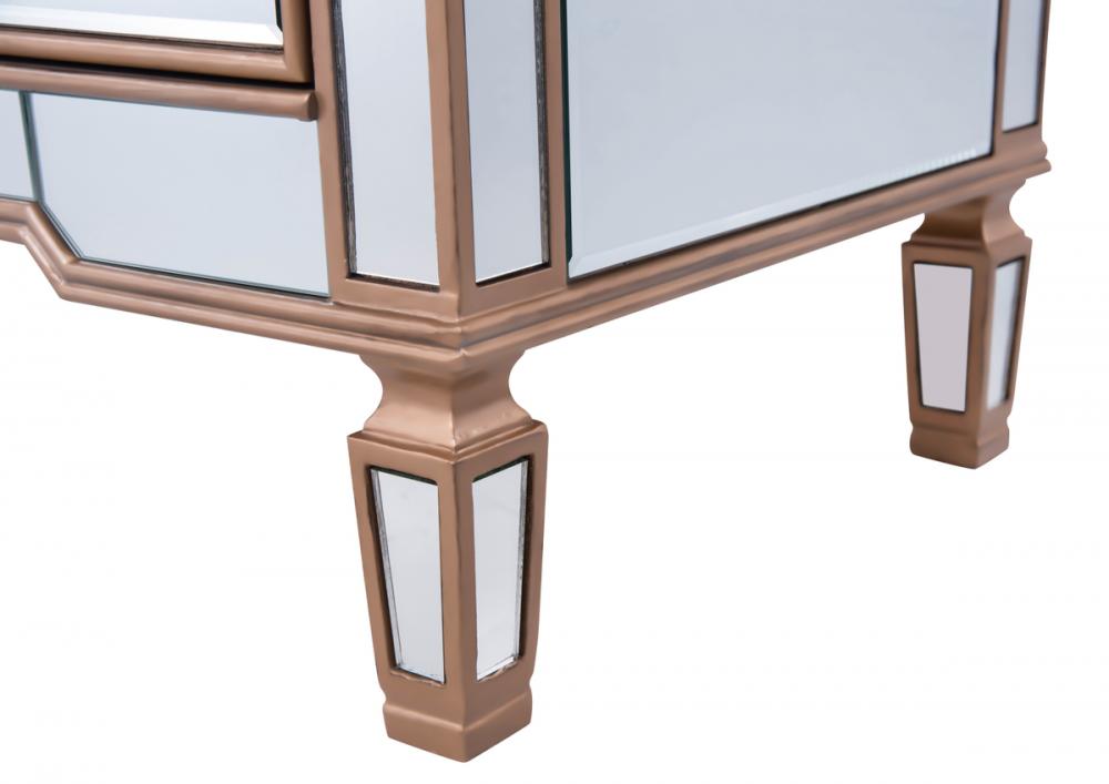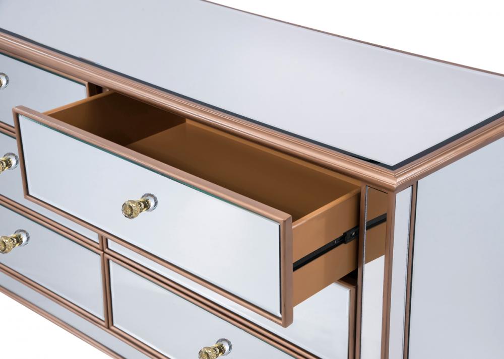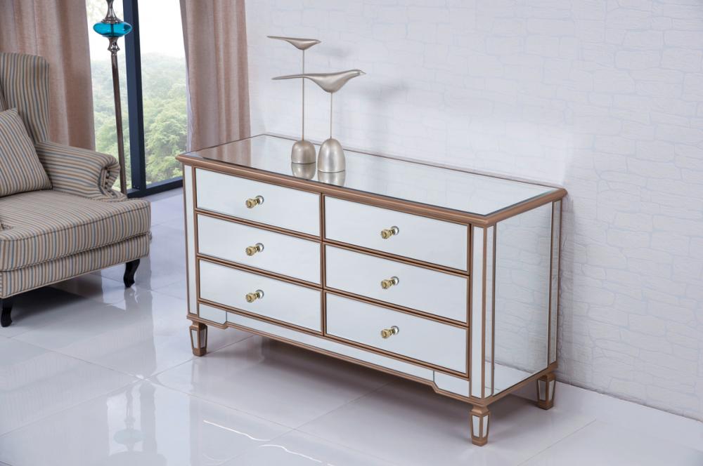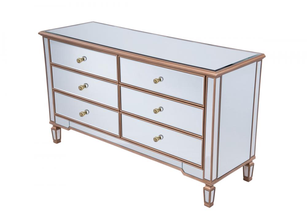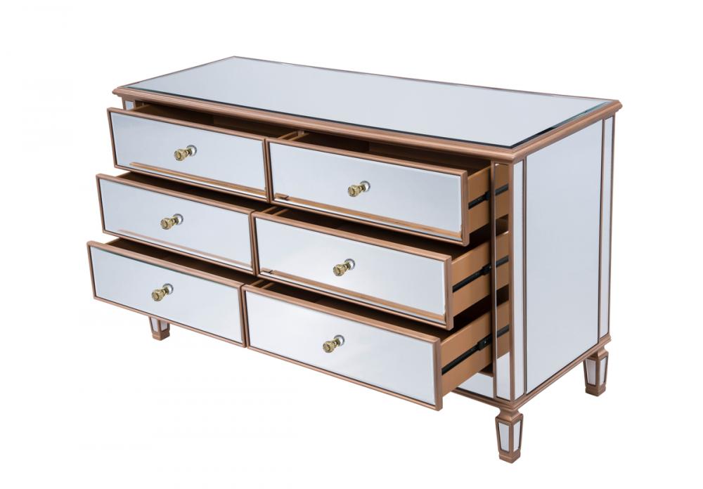 Featuring a hand-rubbed gold finish, incised carved legs and classy lines, this cabinet evokes richness and class, while giving you plenty of drawer space for your clothing or anything you treasure.