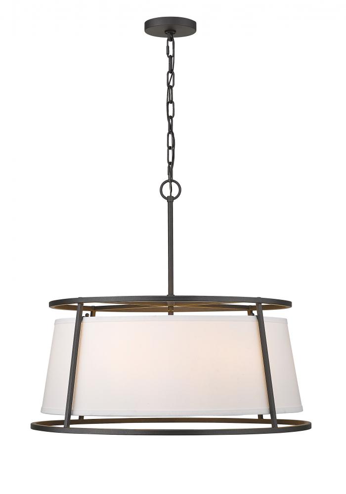 Illuminate your living space with the alluring glow of this elegant, six-light pendant. With a versatile design that works well in almost any room, this sophisticated fixture blends an iron ore finish frame with a soft, white shade for beautiful ambiance.