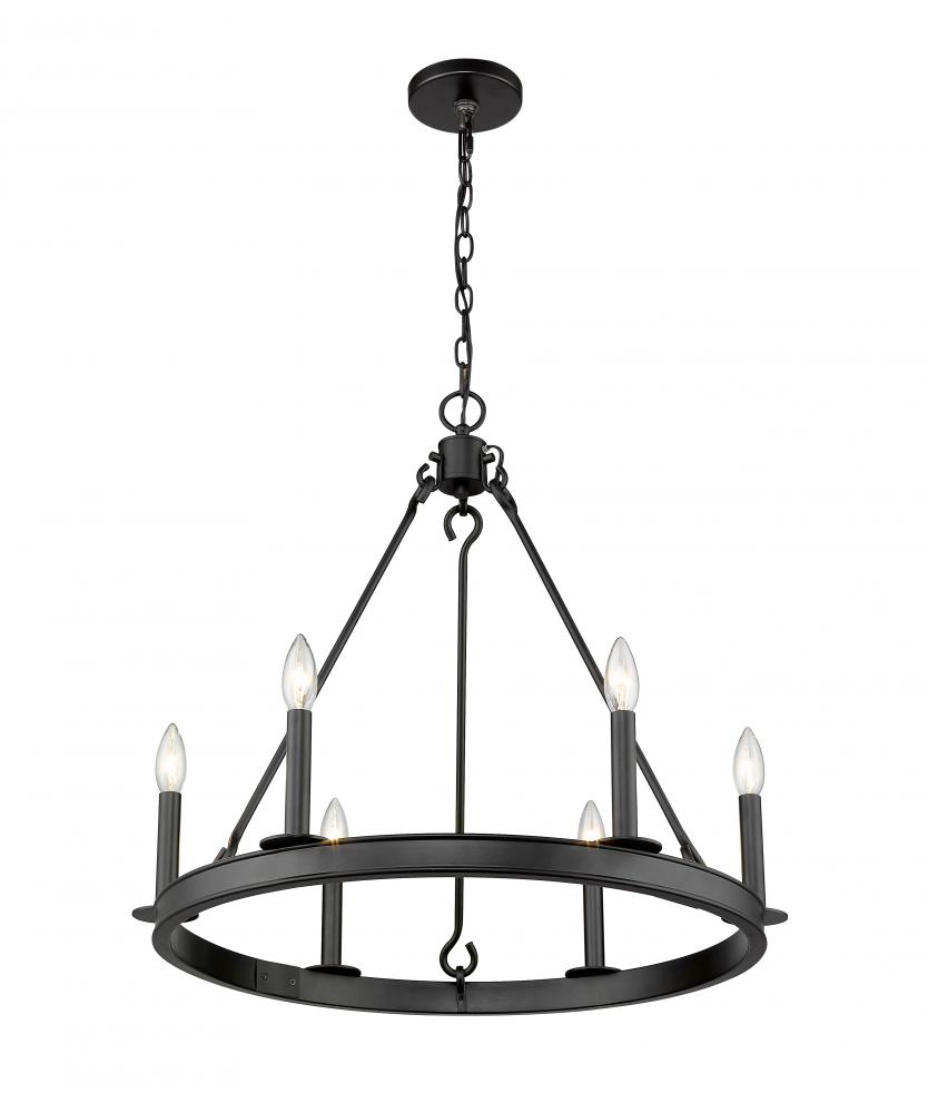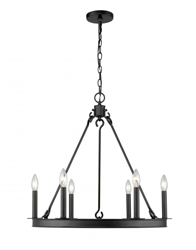 Youll love the alluring style of this six-light chandelier for your home. Its crafted in a handsome matte black finish and features the candle-inspired lights in a charming round design. Its perfectly suited for the breakfast nook, foyer, kitchen, or entertainment room.