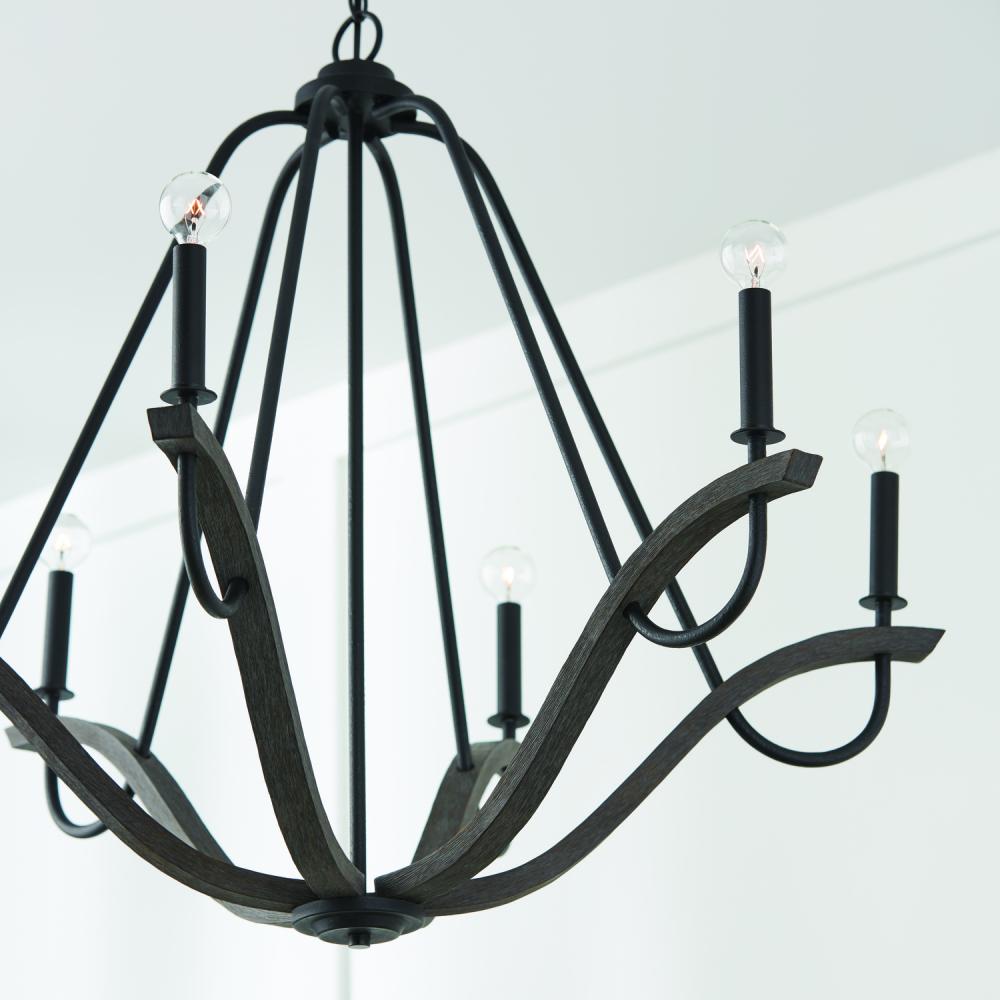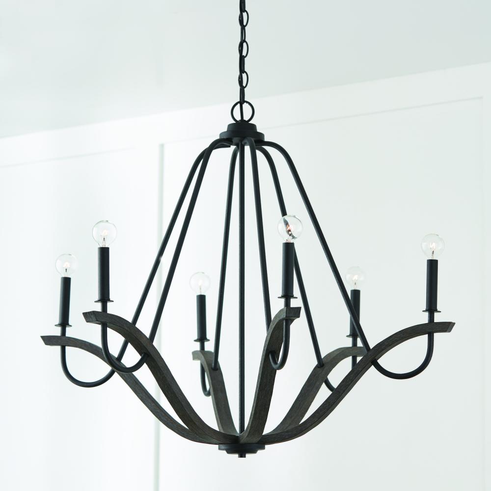36"W x 29.5"H 6-Light Chandelier in Carbon Grey Wood and Black Iron