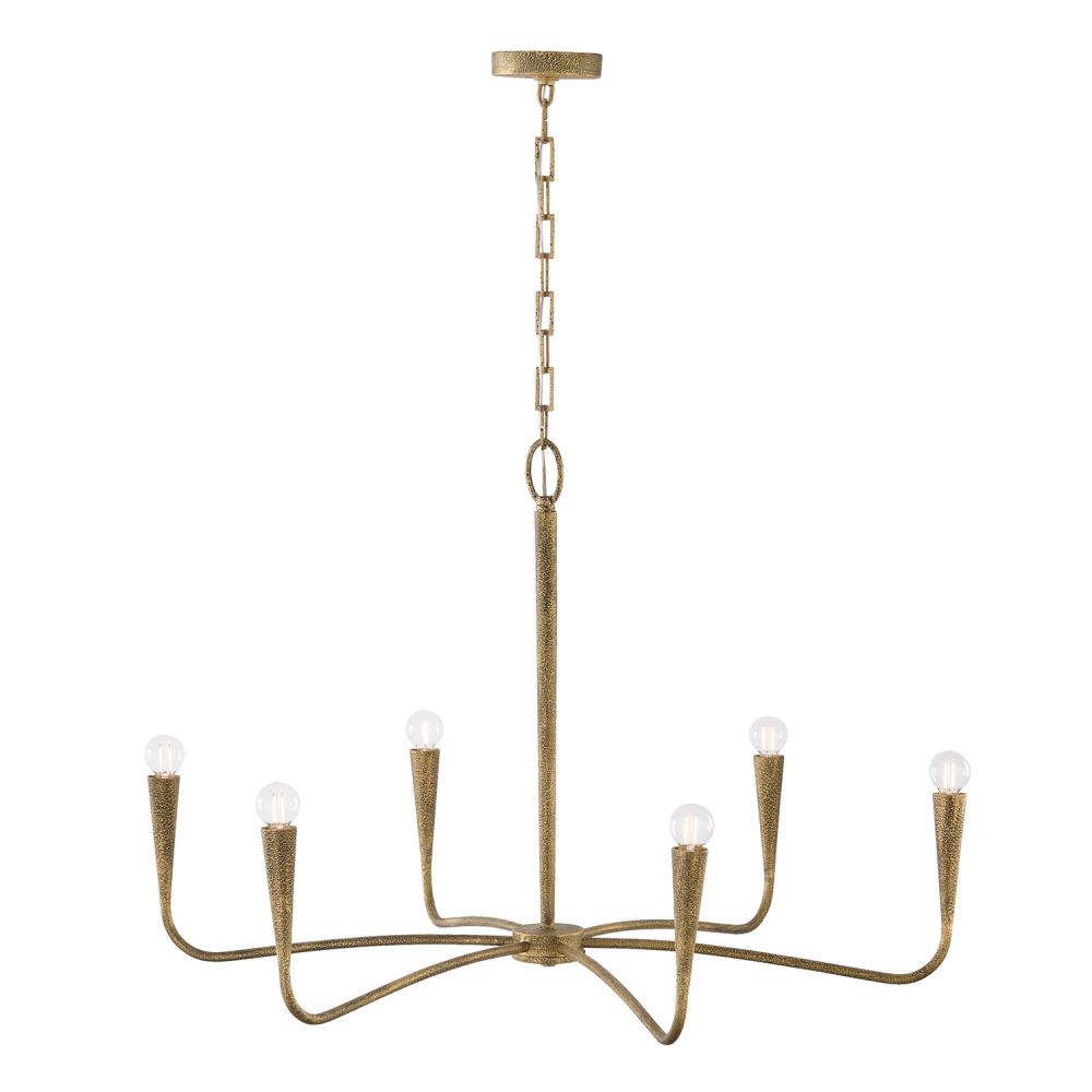 DETAILS: Layers of hand-painted texture bring stunning dimension to the Artisan Gold finish, while the slightly sunken sockets and designer chain create elevated style in the curved, seamless form.