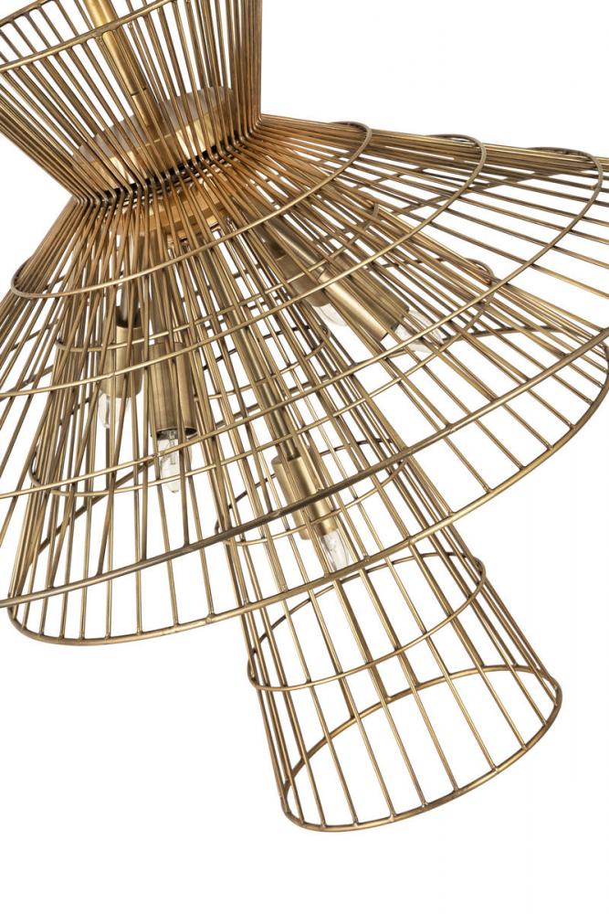 Offer up an energetic look while choosing lighting in a custom space, adding the Alito six-light pendant to steal the show. Warm rubbed brass finish iron crafts a tiered geometric arrangement of wired pieces and matching down rod and canopy. This striking fixture reflects a blend of industrial and modern styling.