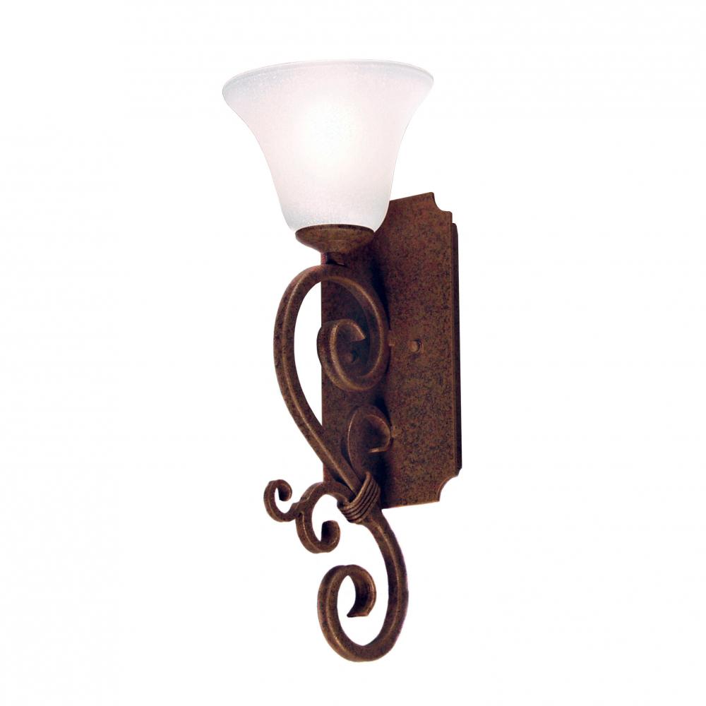 Thierry delivers a graceful elegance rendering a luxurious design statement. A White Scavo Glass Shade is perched on a bobeche embraced by a Hand-forged scrolled arm and hardware featured in a Gilded Tobacco finish. Handcrafted in the USA, this exquisite wall fixture is available in custom sizes, styles, colors and dimmable energy efficient lamping options such as LED. This 18-inch tall sconce is UL and cUL listed for damp and dry locations.