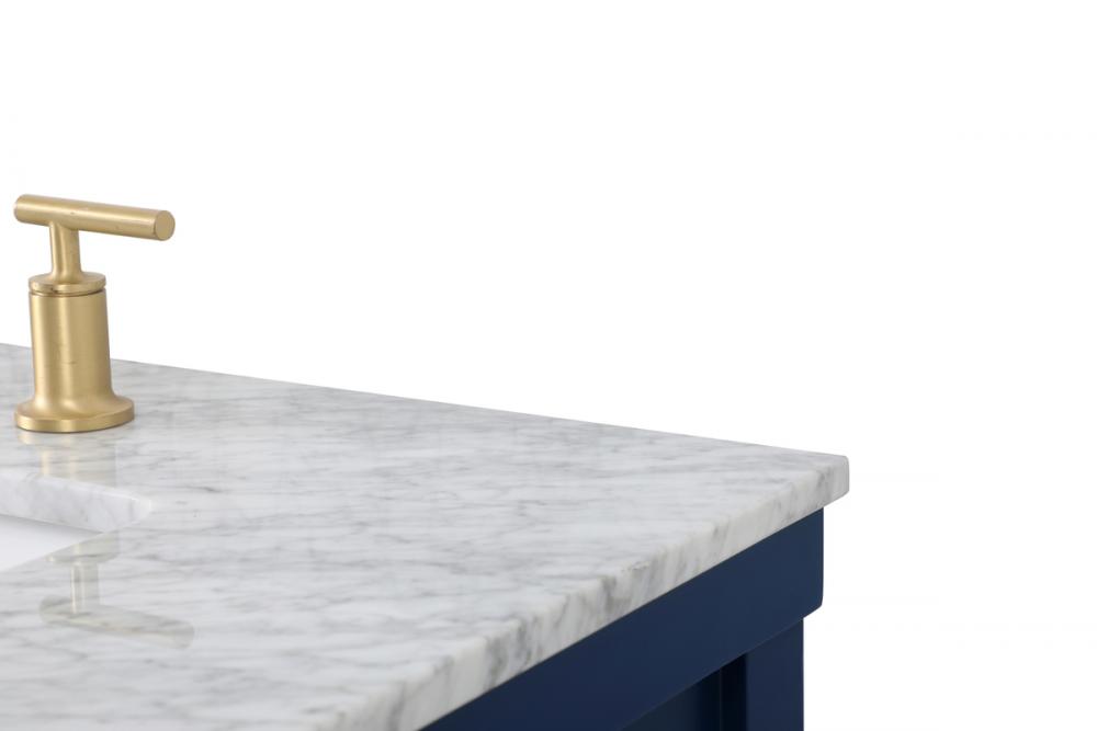 Make the most of your space with this farmhouse style bathroom vanity. Complements well with its beautiful finish, carrara white marble countertop, and the contemporary slender handle bar that sits on the functional drawers with soft closing mechanism, allowing you to store an assortment of bathroom essentials. The lower shelf makes it the perfect space to hold new towels for your guests. This stylish vanity ensures both form and function in your bathroom for you and your guests.