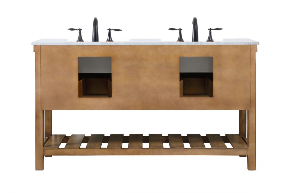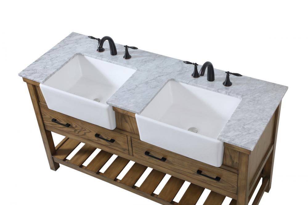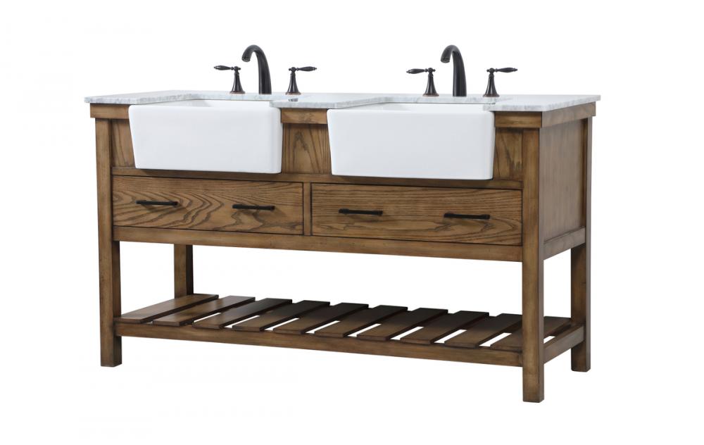 Make the most of your space with this farmhouse style bathroom vanity. Complements well with its beautiful finish, carrara white marble countertop, and the contemporary slender handle bar that sits on the functional drawers with soft closing mechanism, allowing you to store an assortment of bathroom essentials. The lower shelf makes it the perfect space to hold new towels for your guests. This stylish vanity ensures both form and function in your bathroom for you and your guests.