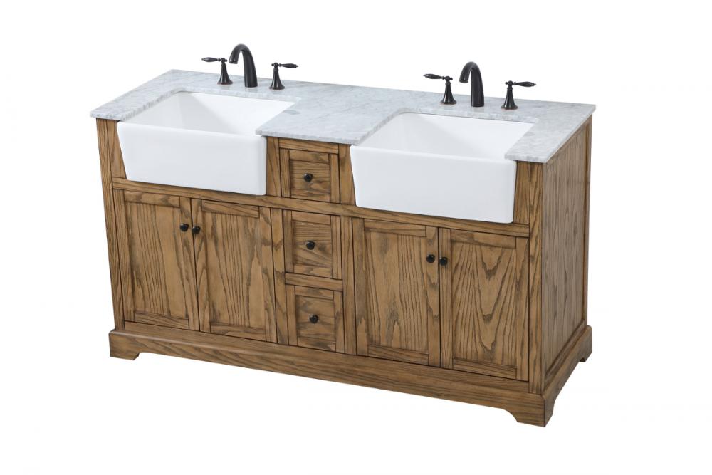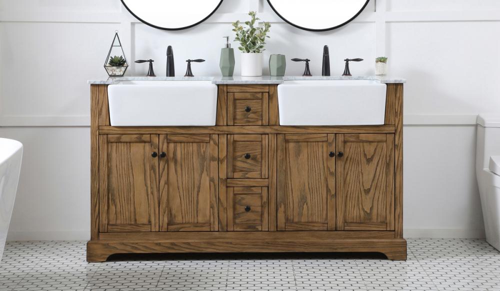 Make the most of your space with this farmhouse style bathroom vanity. Complements well with its beautiful finish, carrara white marble countertop, and the contemporary slender handle bar that sits on the functional drawers with soft closing mechanism, allowing you to store an assortment of bathroom essentials. The lower shelf makes it the perfect space to hold new towels for your guests. This stylish vanity ensures both form and function in your bathroom for you and your guests.