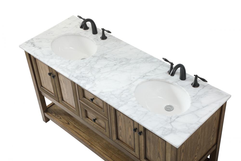 Comes with a double undermount porcelain sink and a carrara white marble countertop